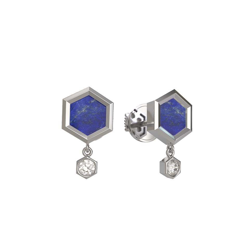 Серьги из белого золота c бриллиантами и лазуритом