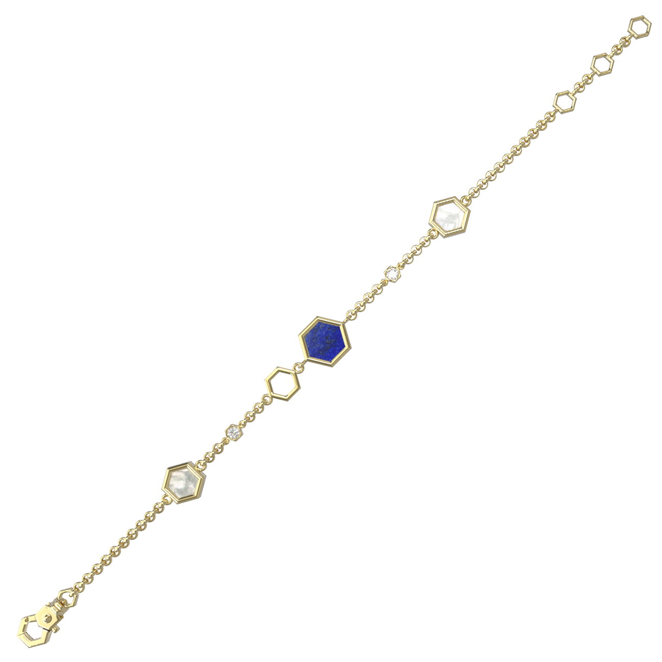 Браслет из лимонного золота c бриллиантами, лазуритом и перламутром