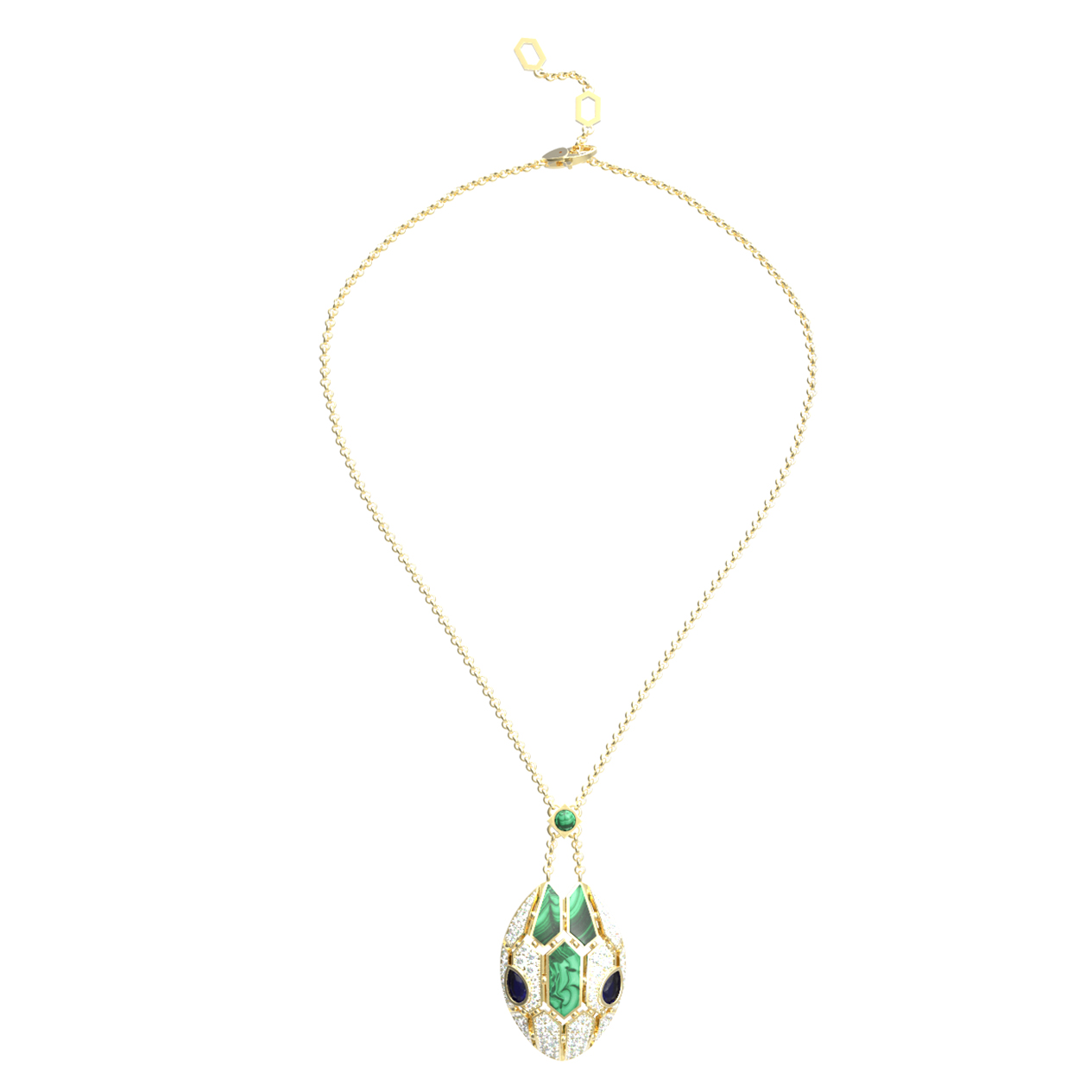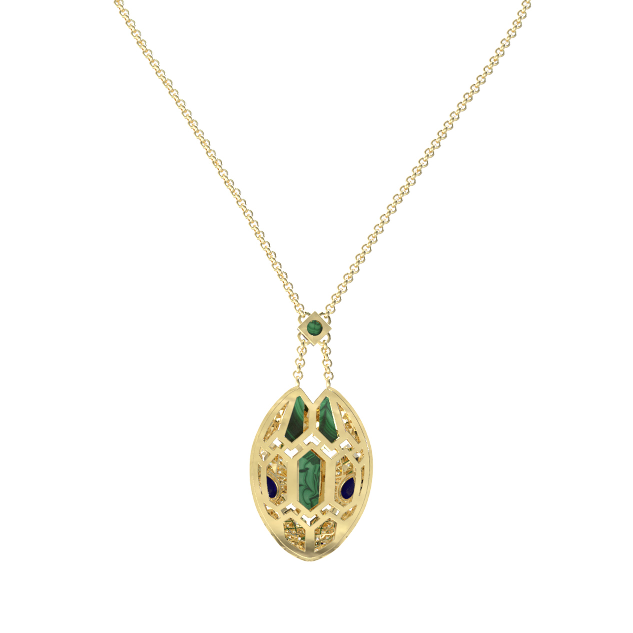 Колье из лимонного золота c бриллиантами, сапфиром и малахитом