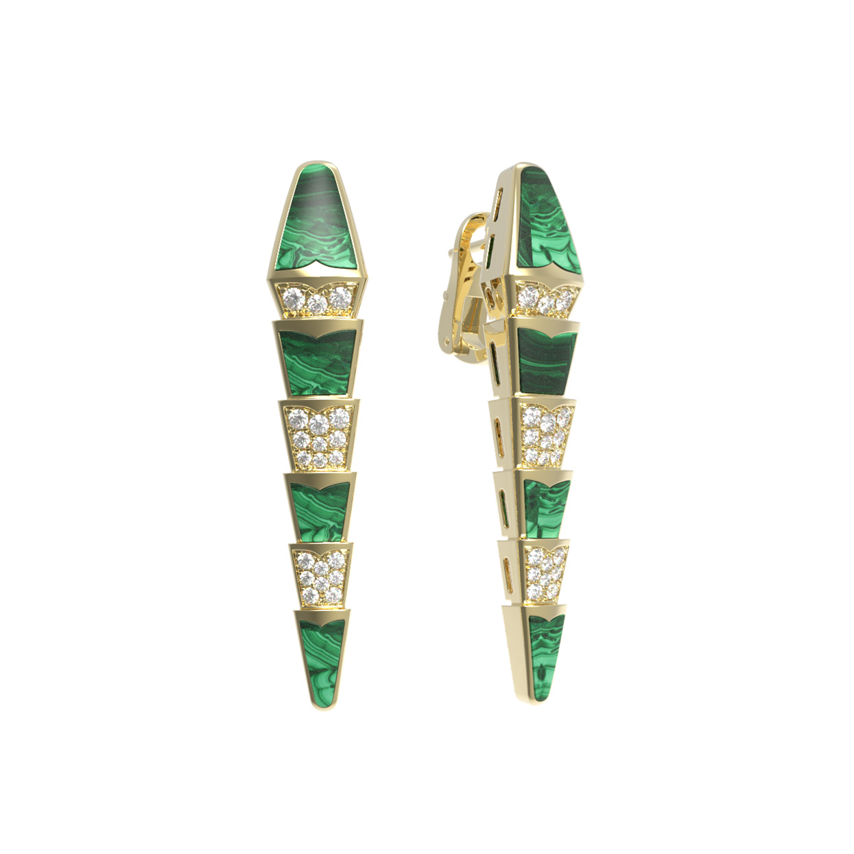 Серьги из лимонного золота c бриллиантами и малахитом