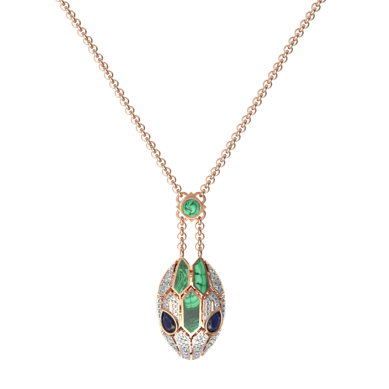 Колье из золота c бриллиантами, сапфиром и малахитом