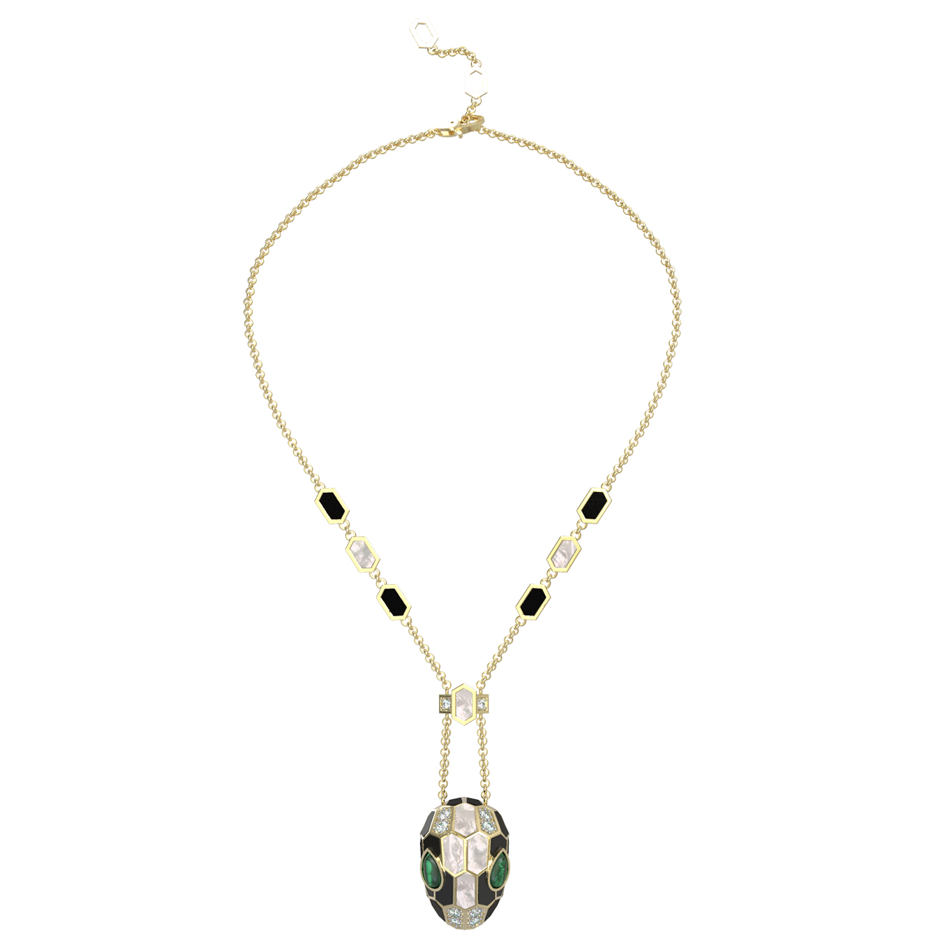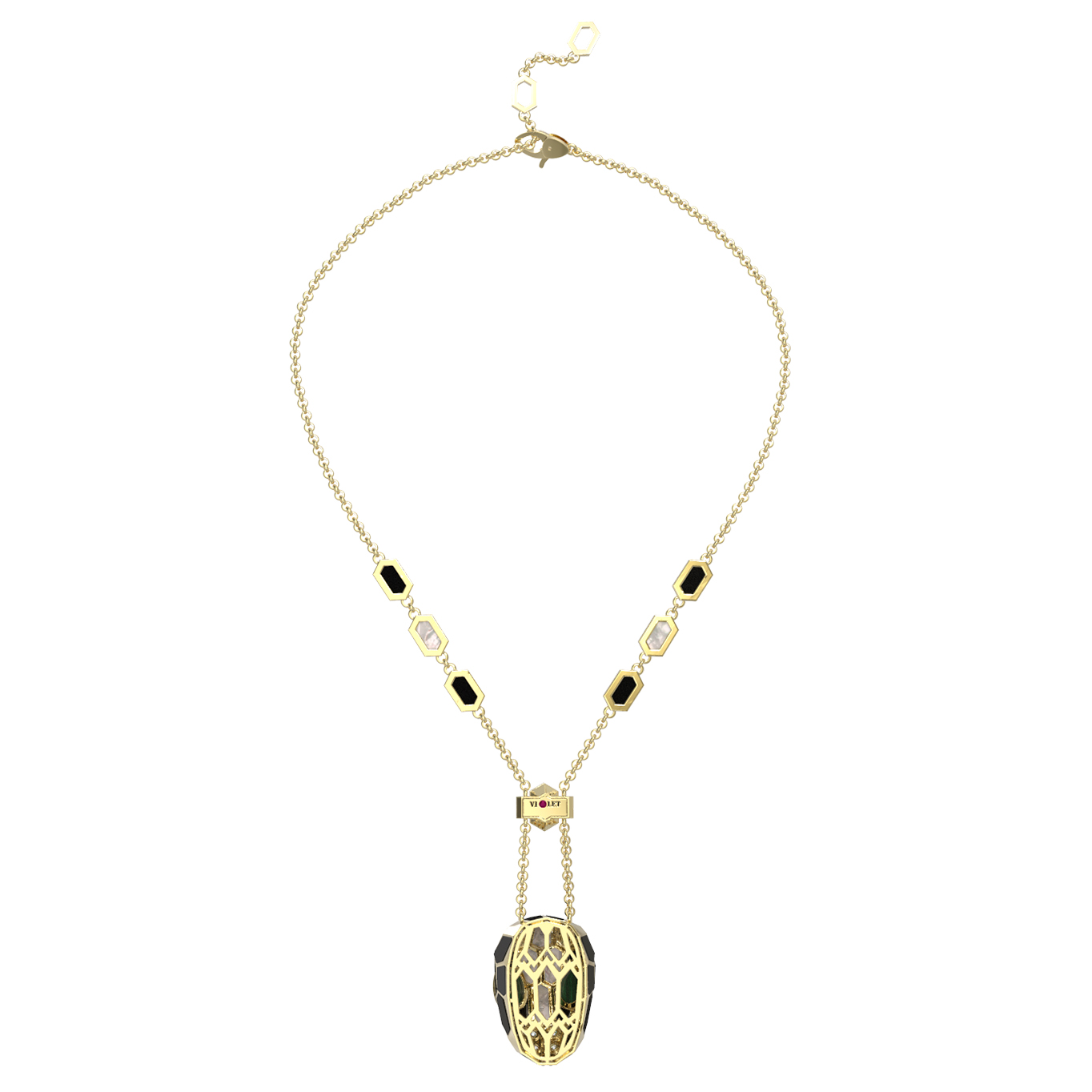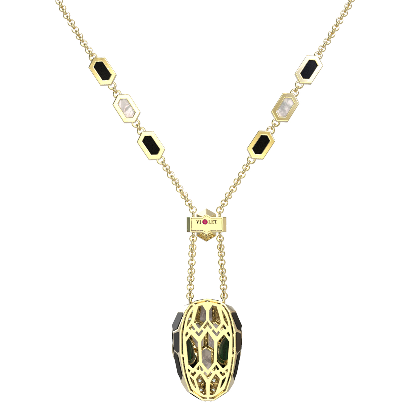 Колье из лимонного золота c бриллиантами, рубином, ониксом, малахитом и перламутром