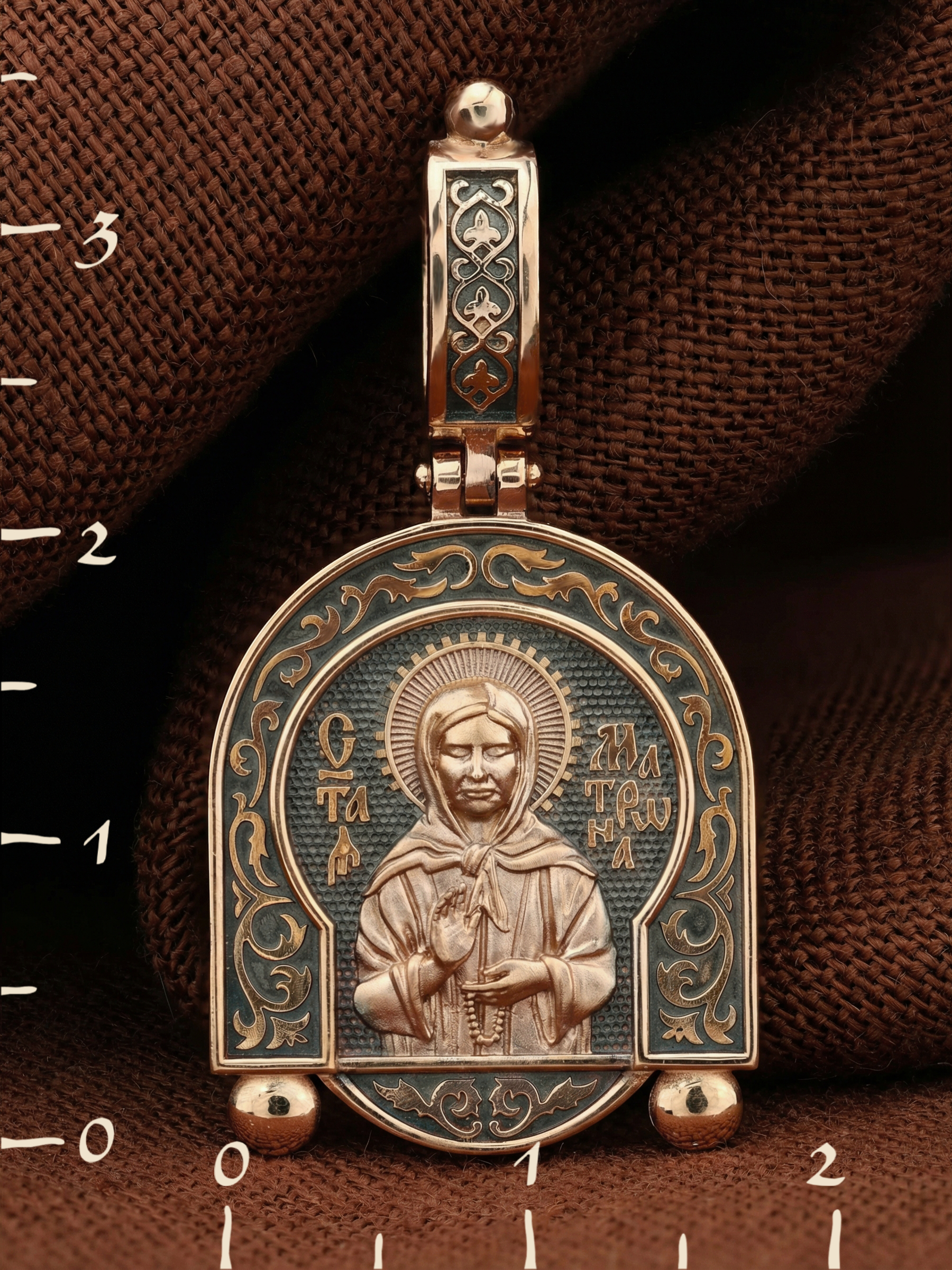 На лицевой стороне образка изображена Святая Матрона Московская.