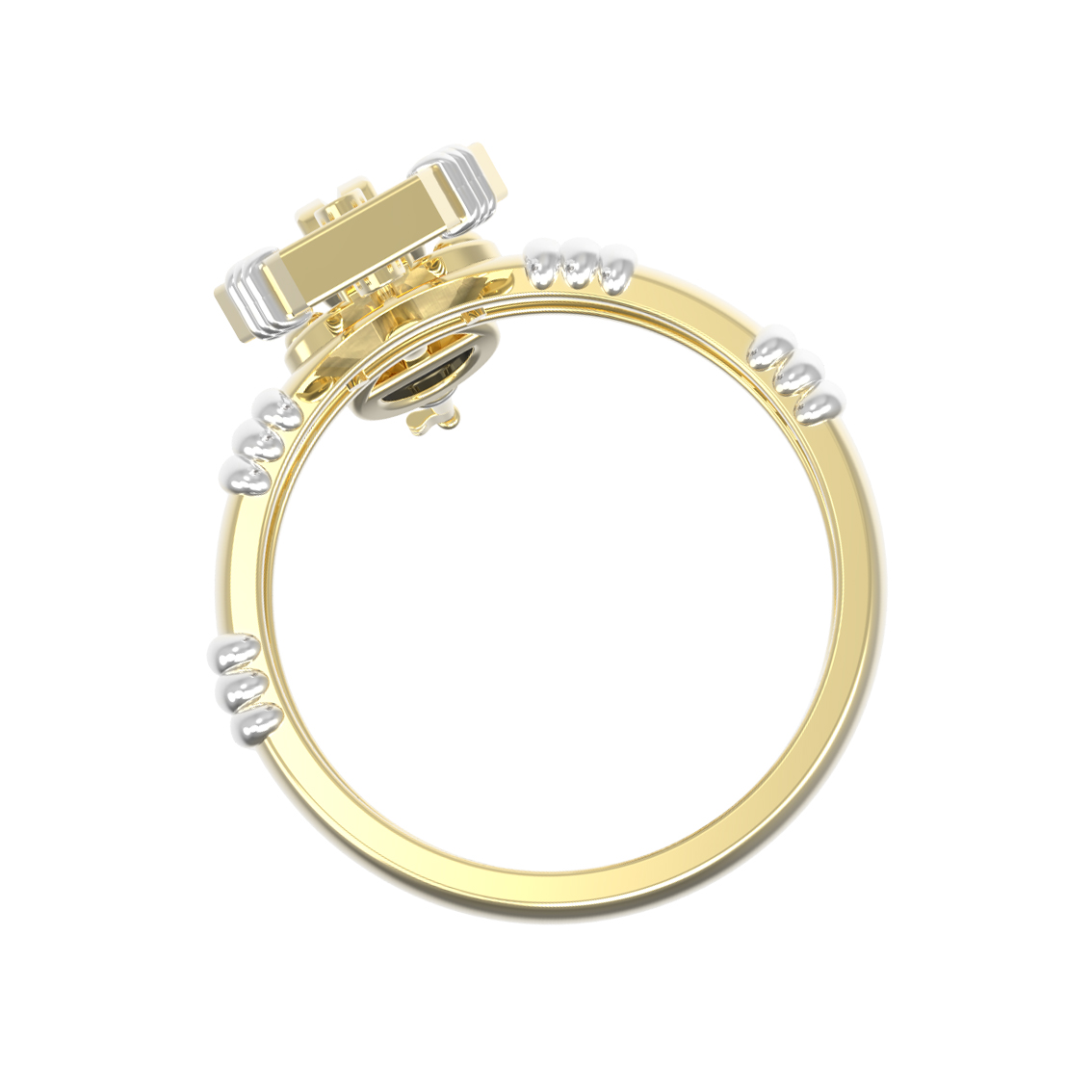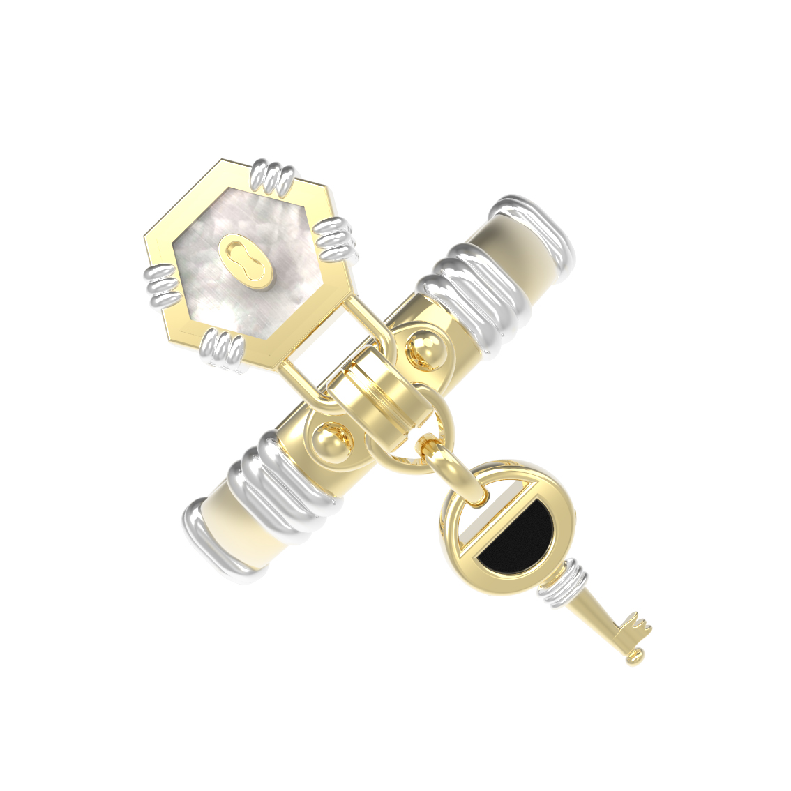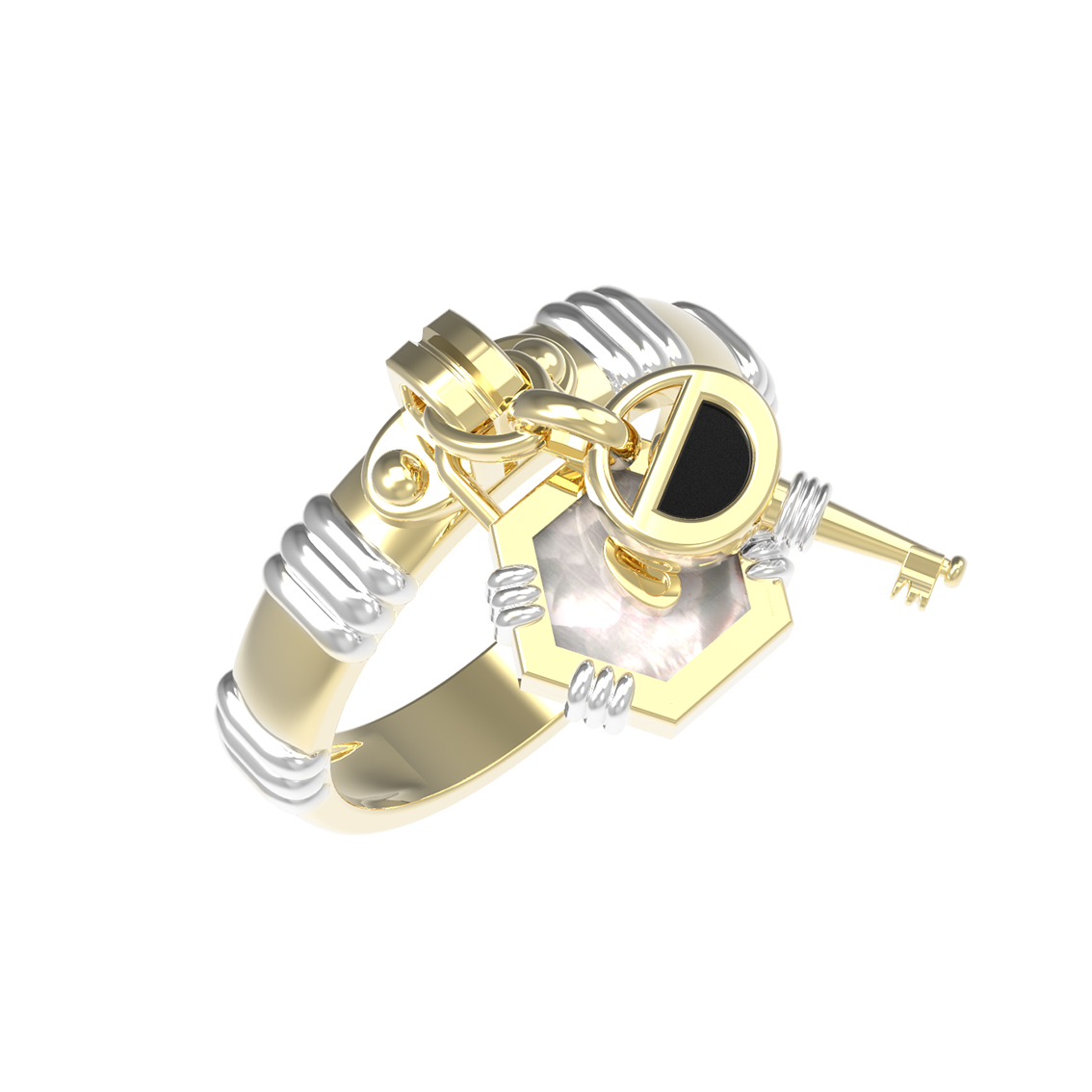 Кольцо из лимонного золота c ониксом и перламутром