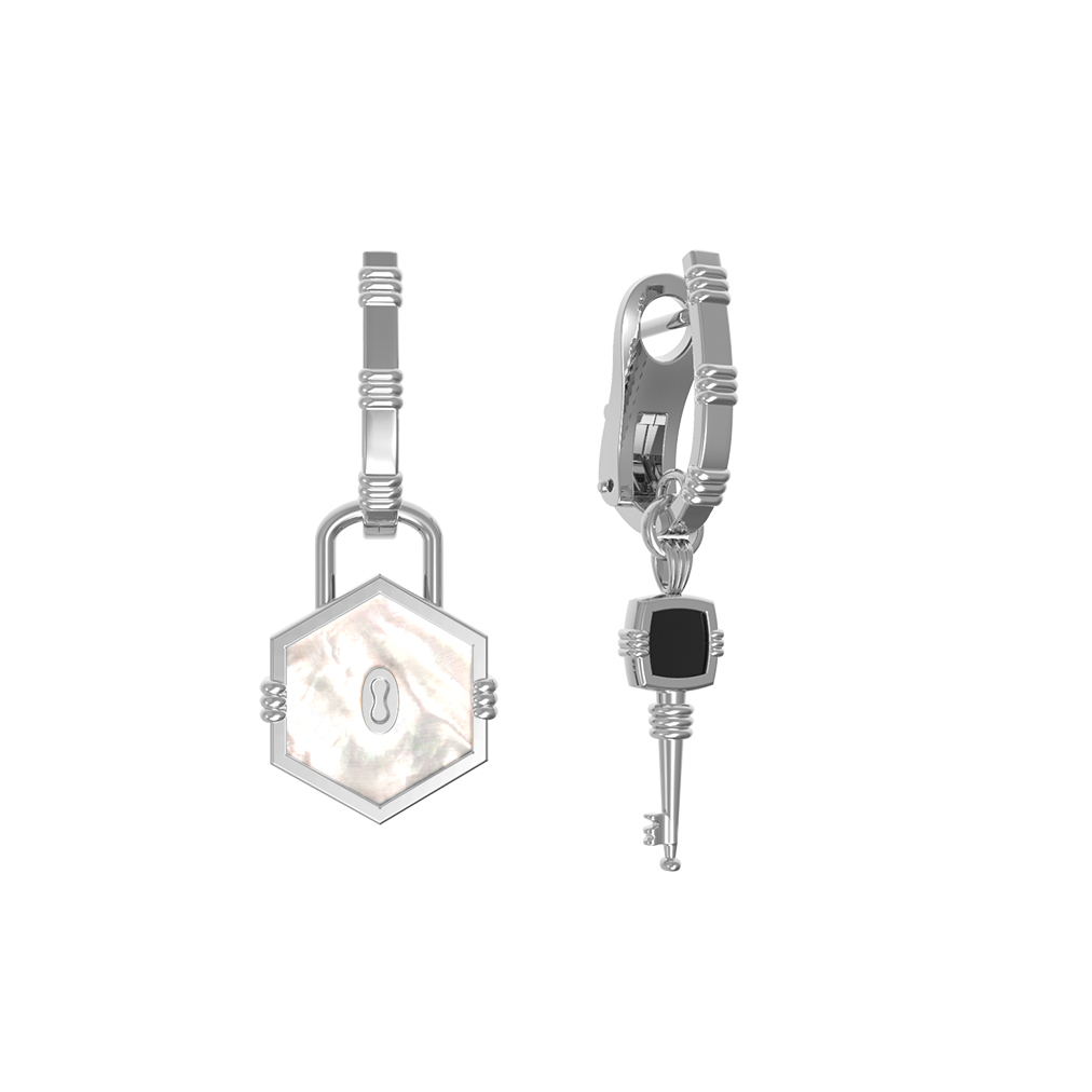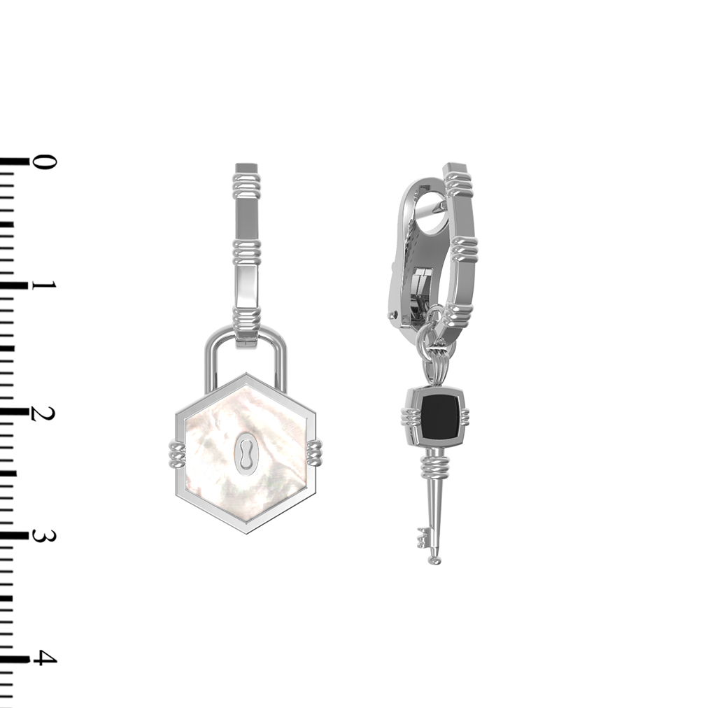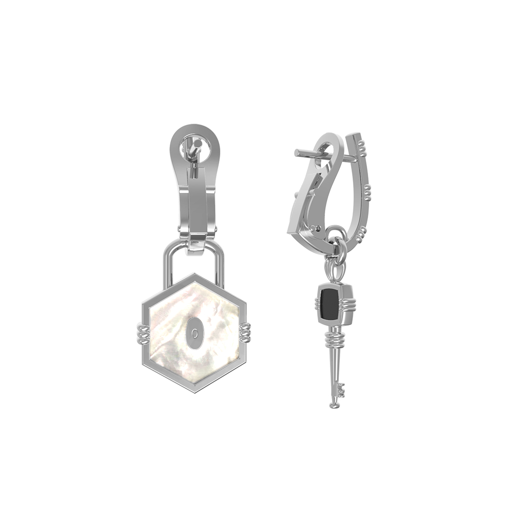 Серьги из белого золота c ониксом и перламутром