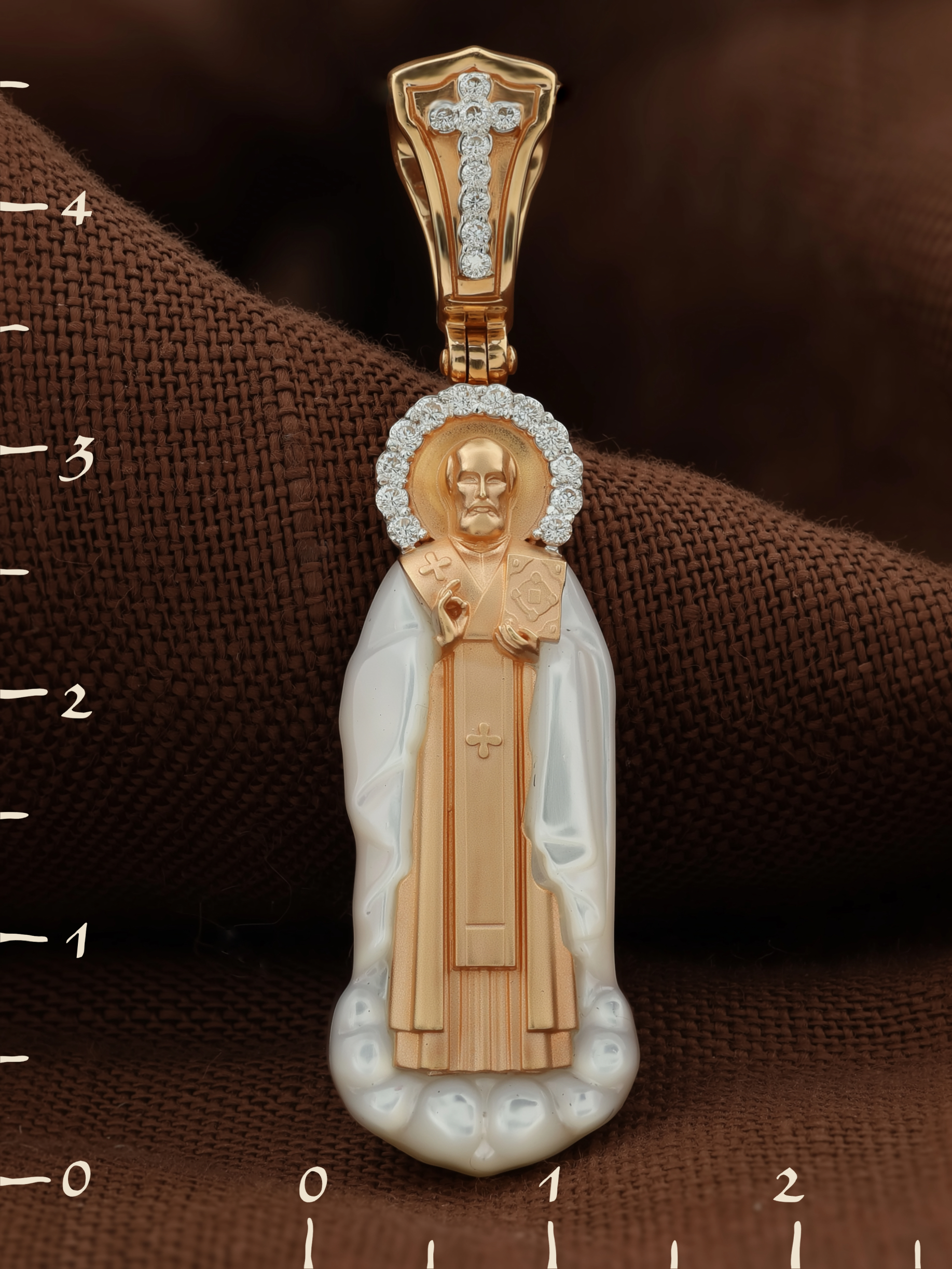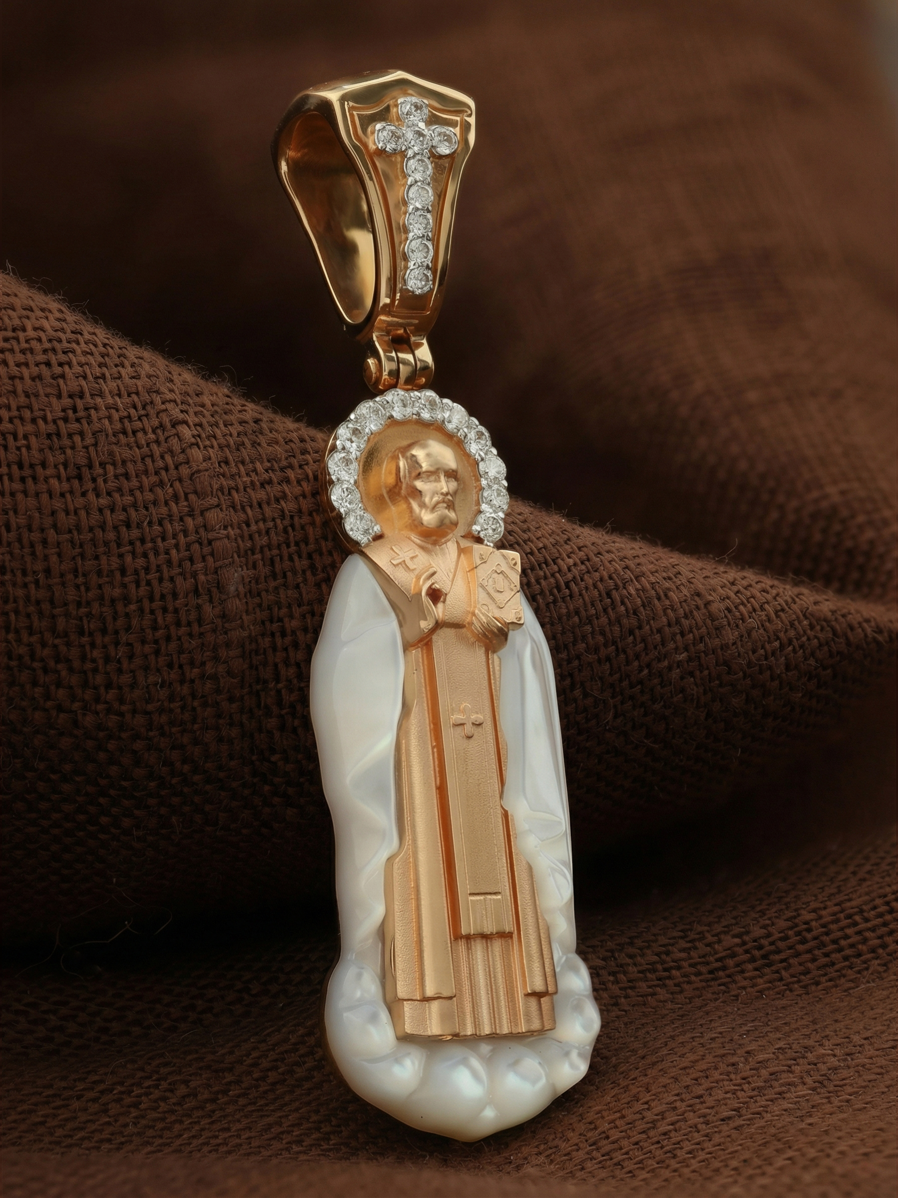 Образок из золота c бриллиантами и перламутром