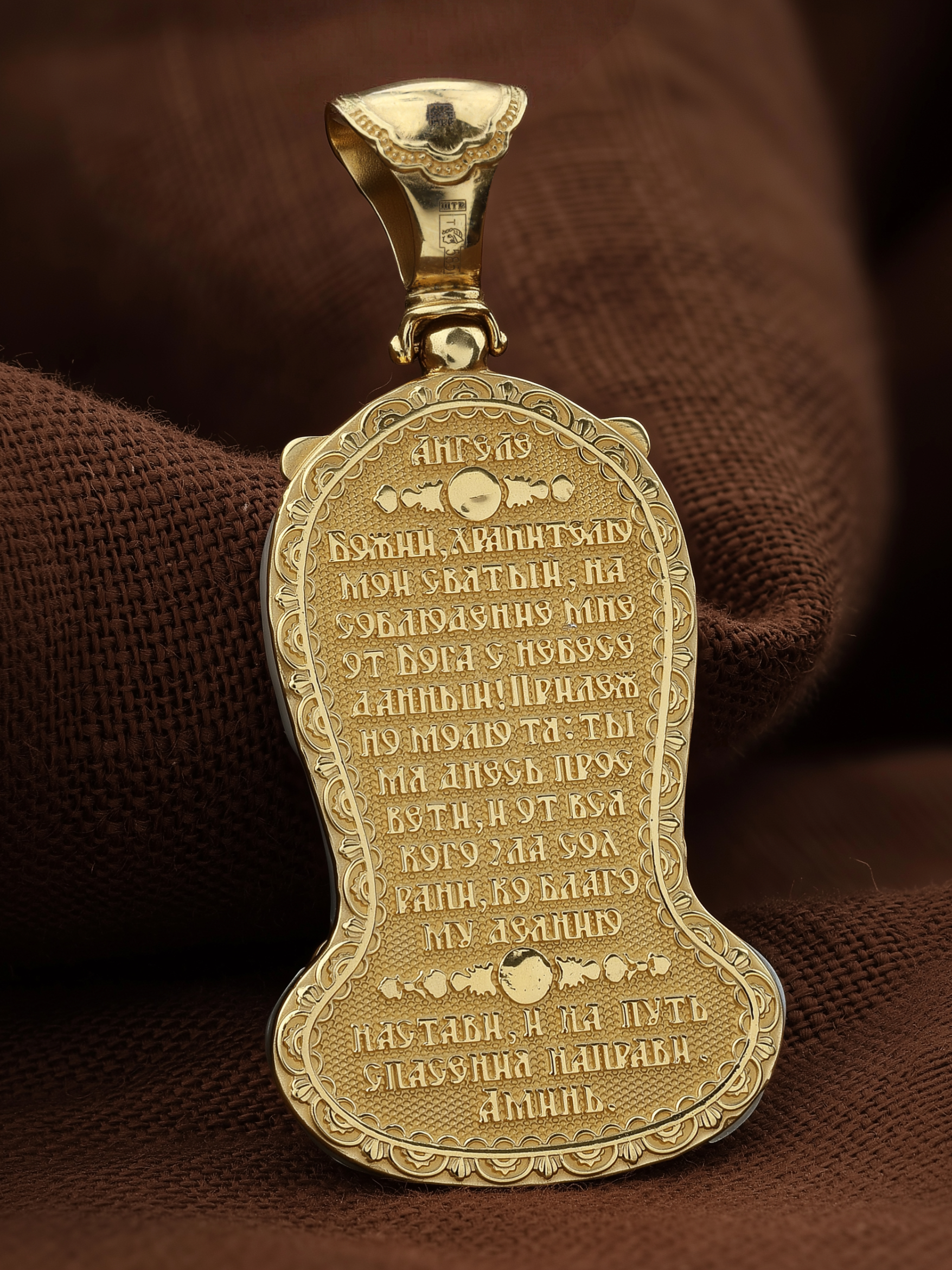 На оборотной стороне образка написана молитва: «Ангеле Божий, хранителю мой святый, на соблюдение мне от Бога с небесе данный! Прилежно молю тя: ты мя днесь просвети, и от всякаго зла сохрани, ко благому деянию настави, и на путь спасения направи. Аминь»