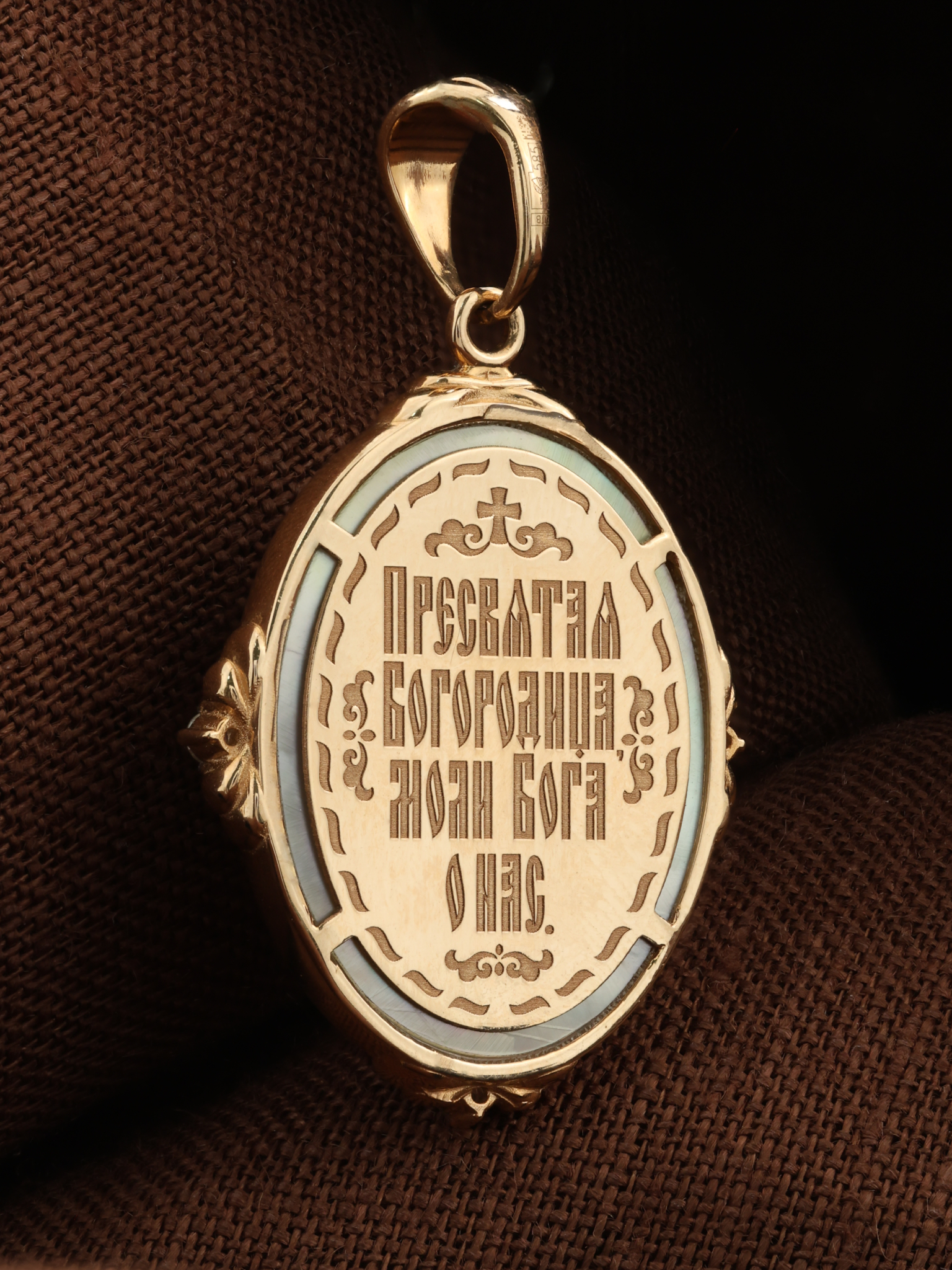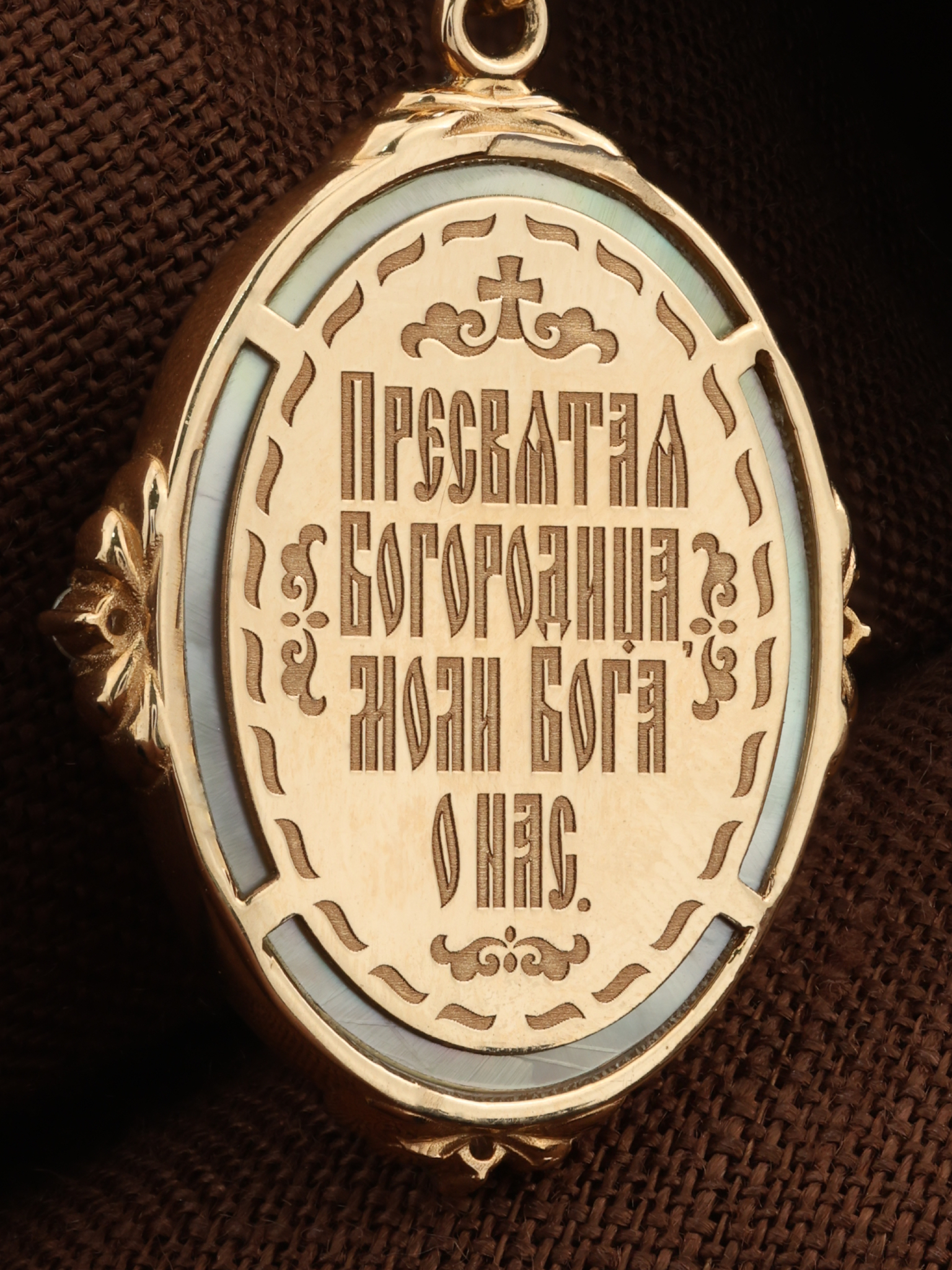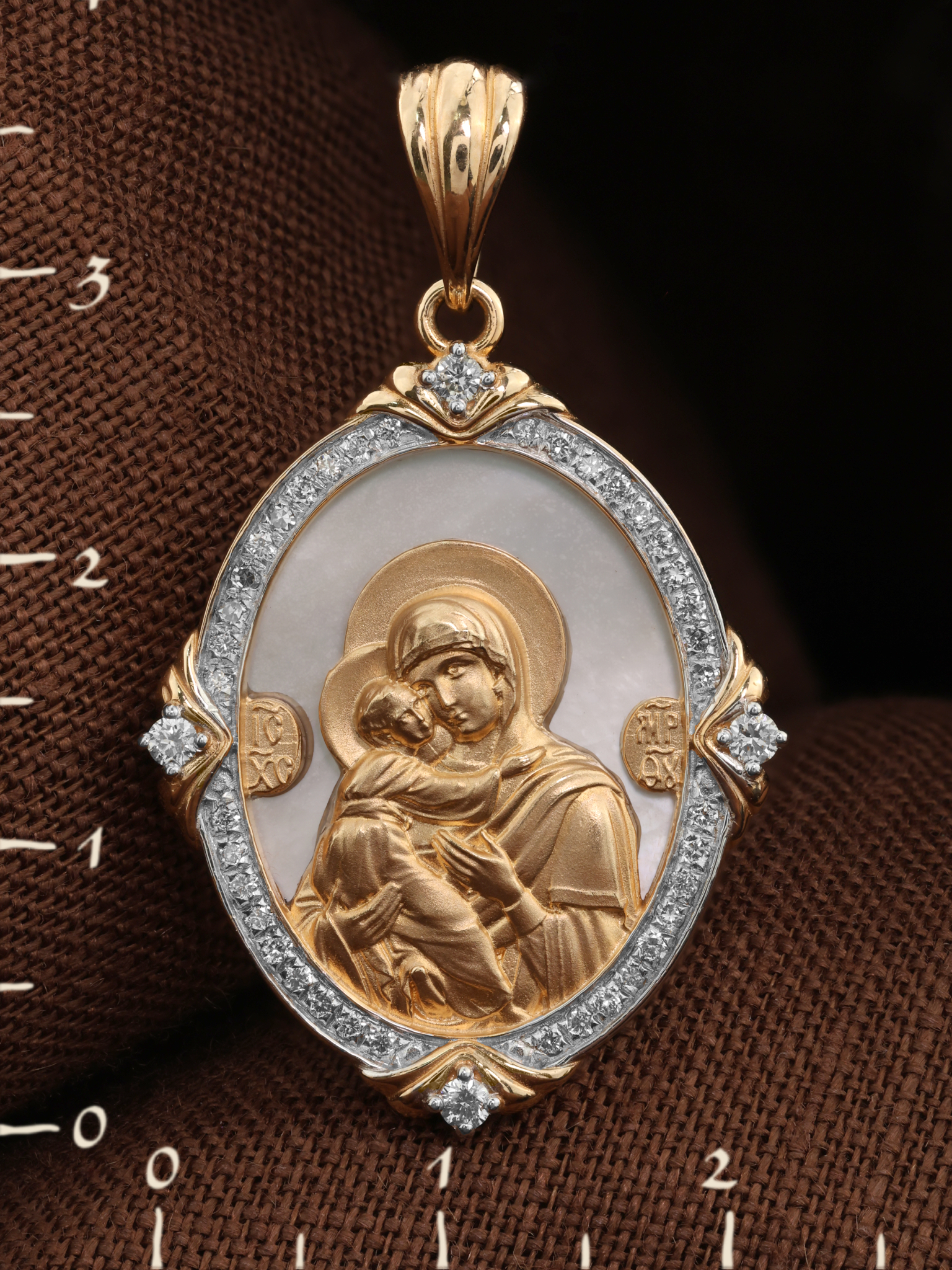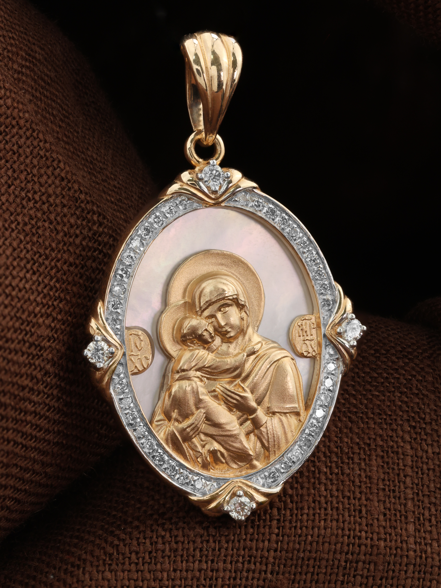 Образок из золота c бриллиантами и перламутром