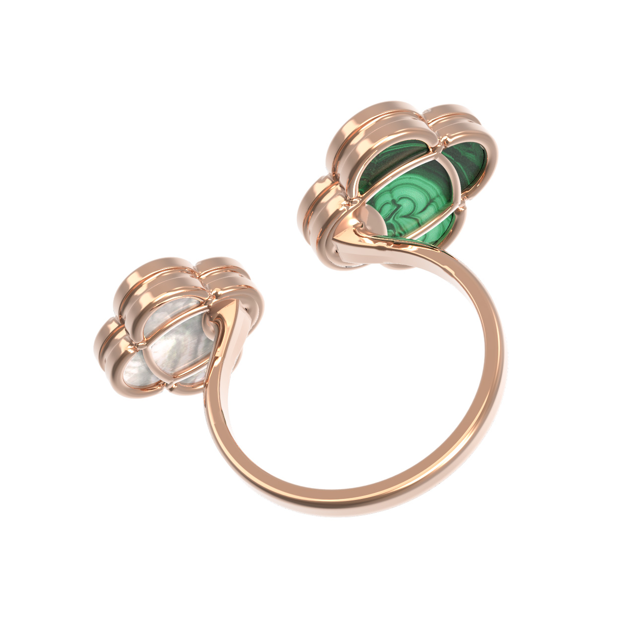 Кольцо из золота c малахитом и перламутром