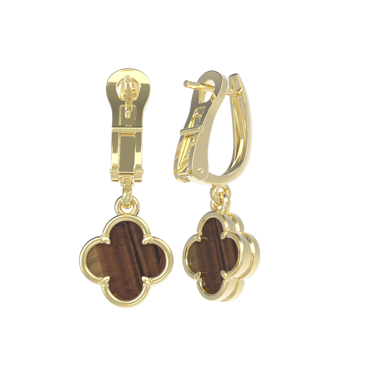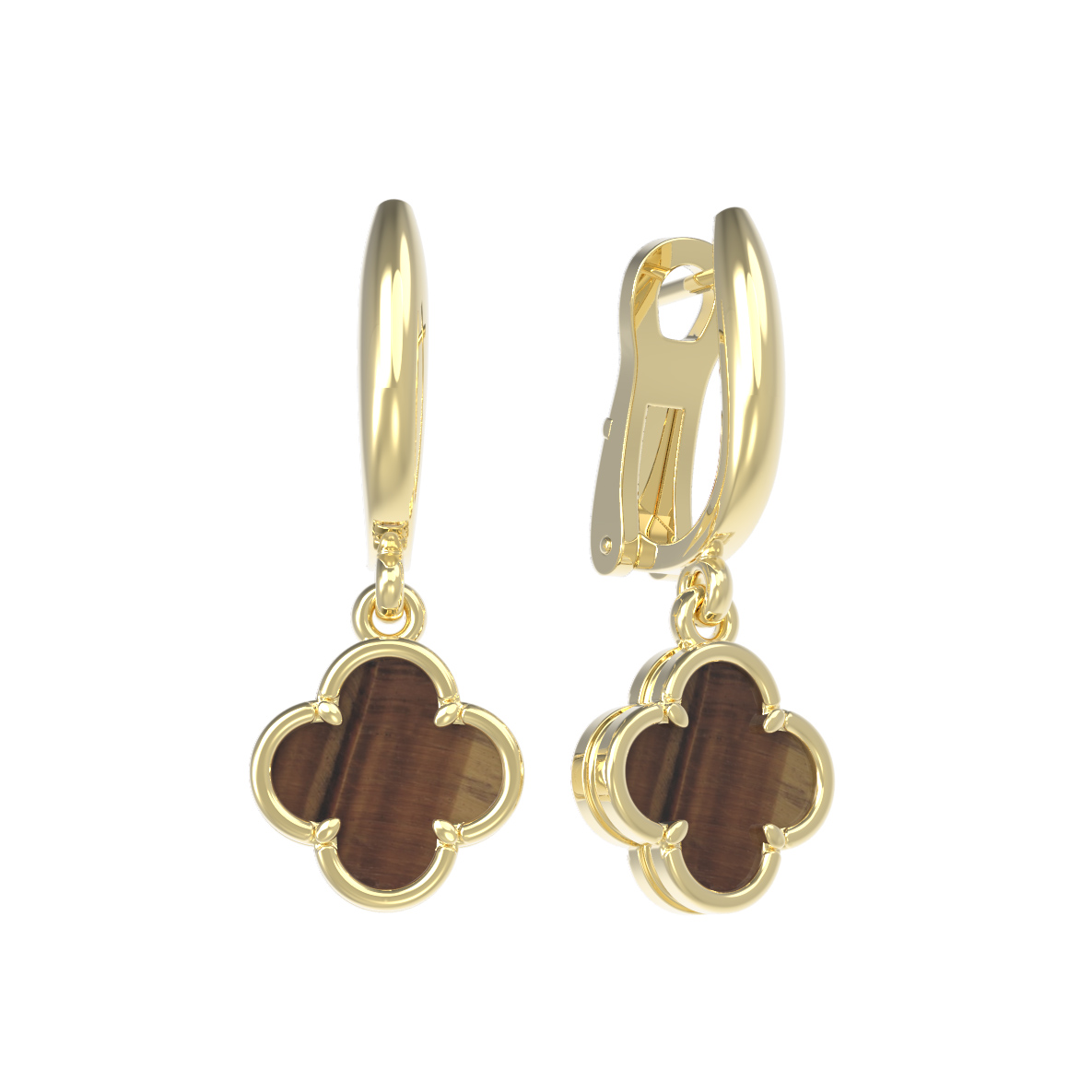Серьги из лимонного золота c тигровым глазом