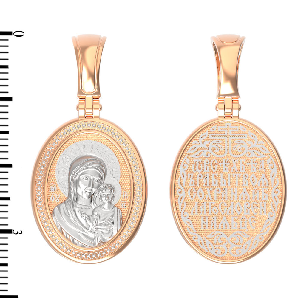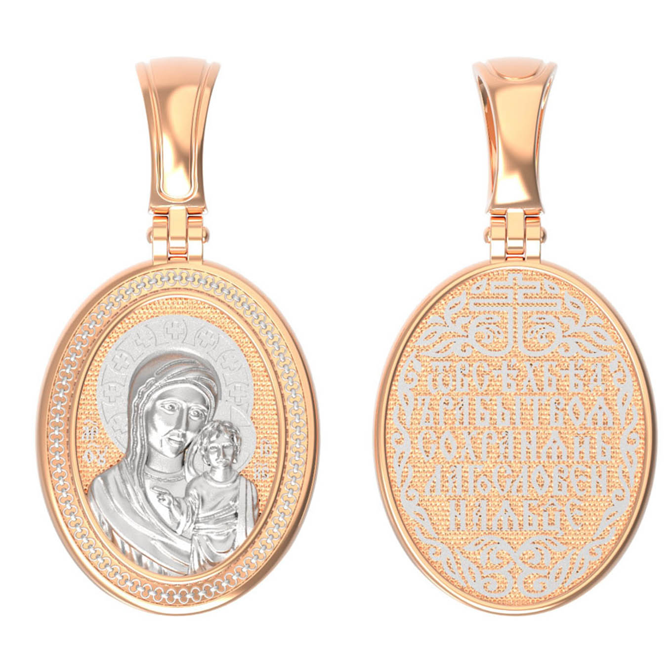 На лицевой части образка изображена Казанская икона Божией Матери — одна из самых почитаемых в России чудотворных икон Богородицы. Богословское значение Казанской иконы — указать верующим истинный Путь к спасению, который лежит через Христа. Только Божия Матерь имеет настолько сильное дерзновение к Спасителю, что может ходатайствовать перед Ним за всех верных. Именно этот образ дарится новой повенчанной паре, как хранитель очага и семейная реликвия. Молитва перед Казанской иконой Божьей Матери помогает во всех сложных случаях жизни, в болезнях, во всех печалях, невзгодах, скорбях. Уникальная история появления, чудеса, случившиеся по молитвам православных людей возле образа — все это делает Казанскую Богородицу особенной, среди тысяч других икон.