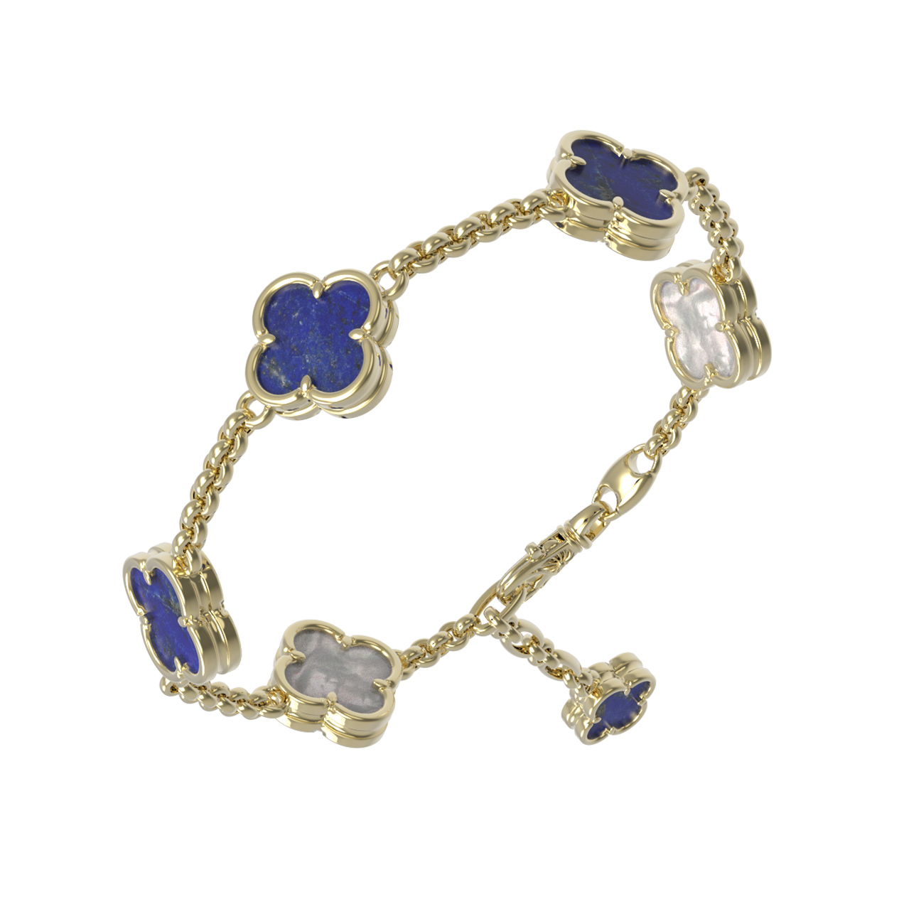 Браслет из лимонного золота c лазуритом и перламутром