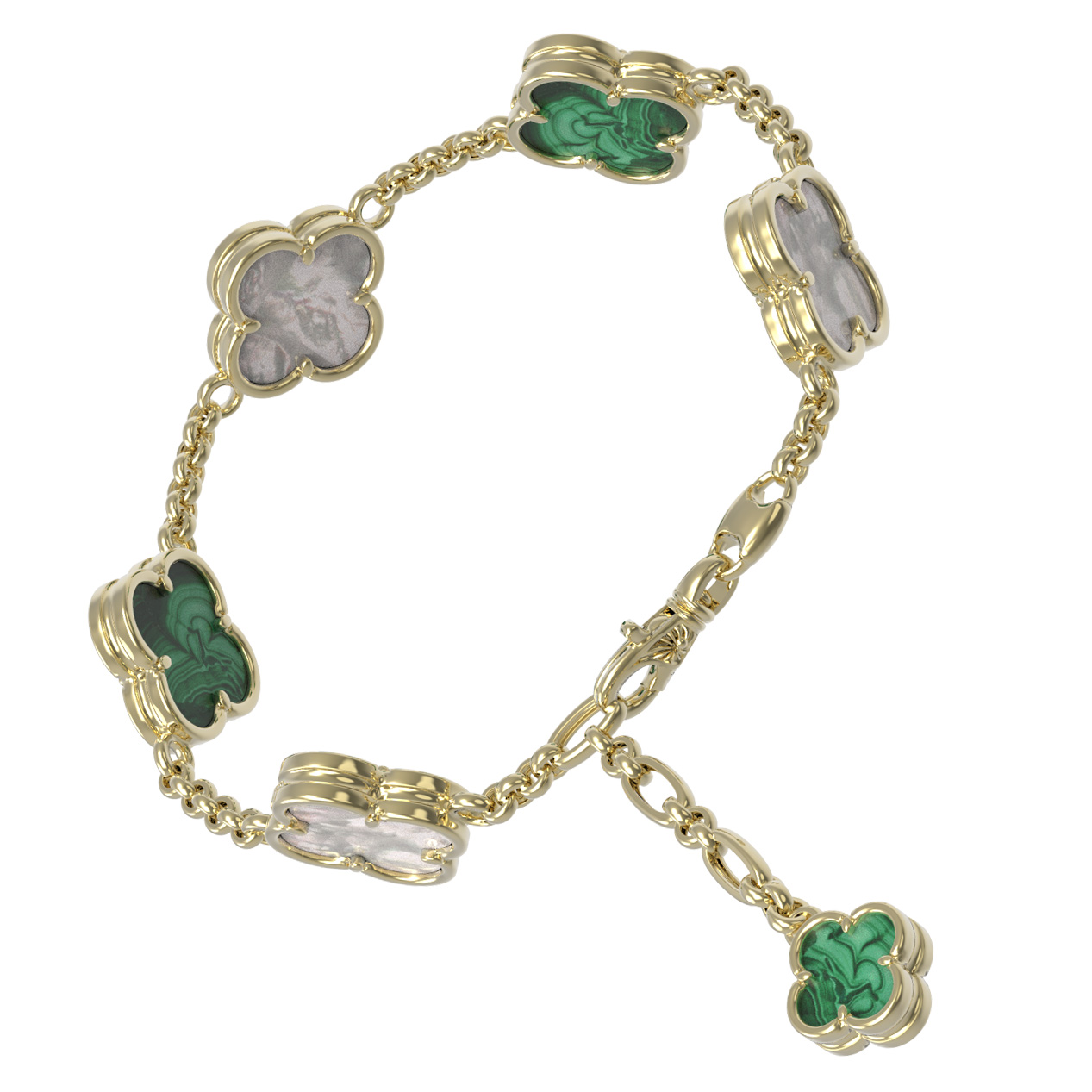 Браслет из лимонного золота c малахитом и перламутром
