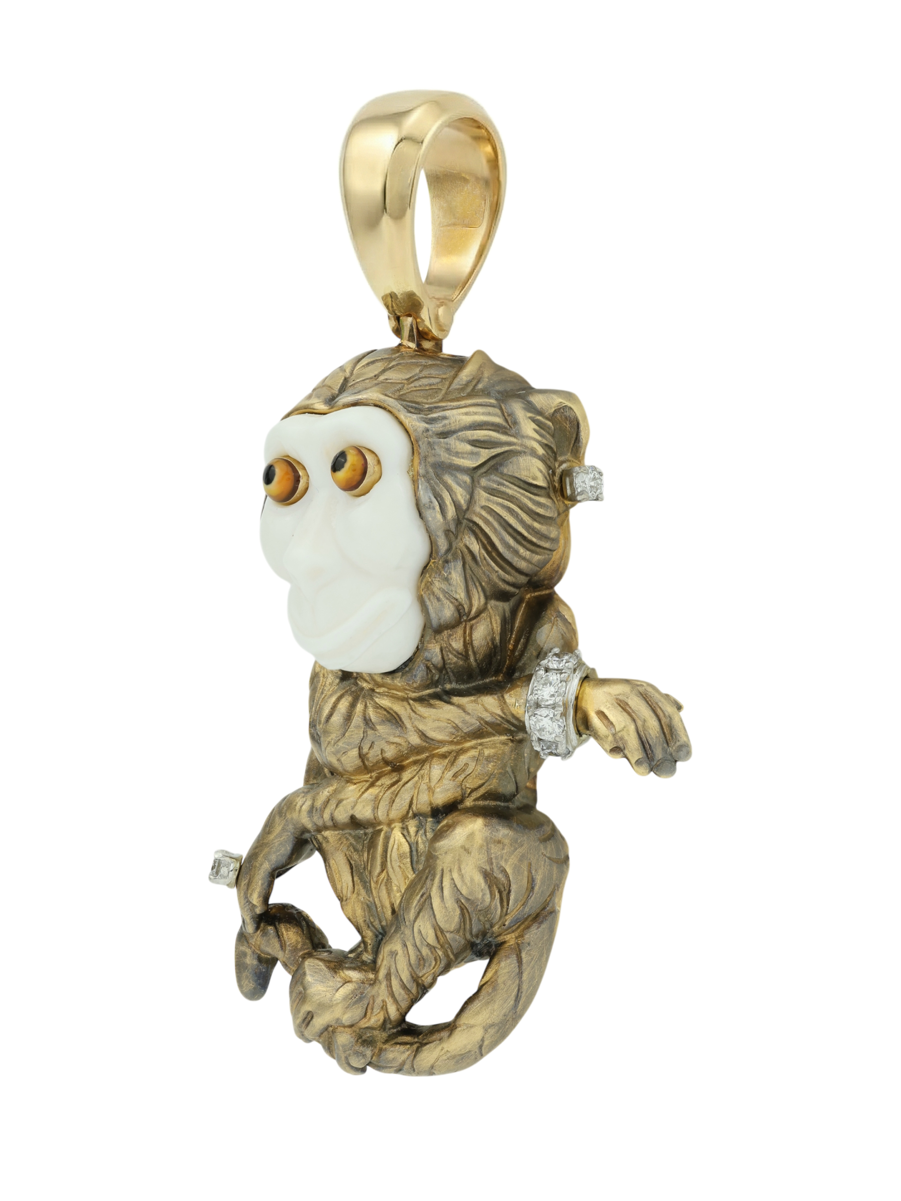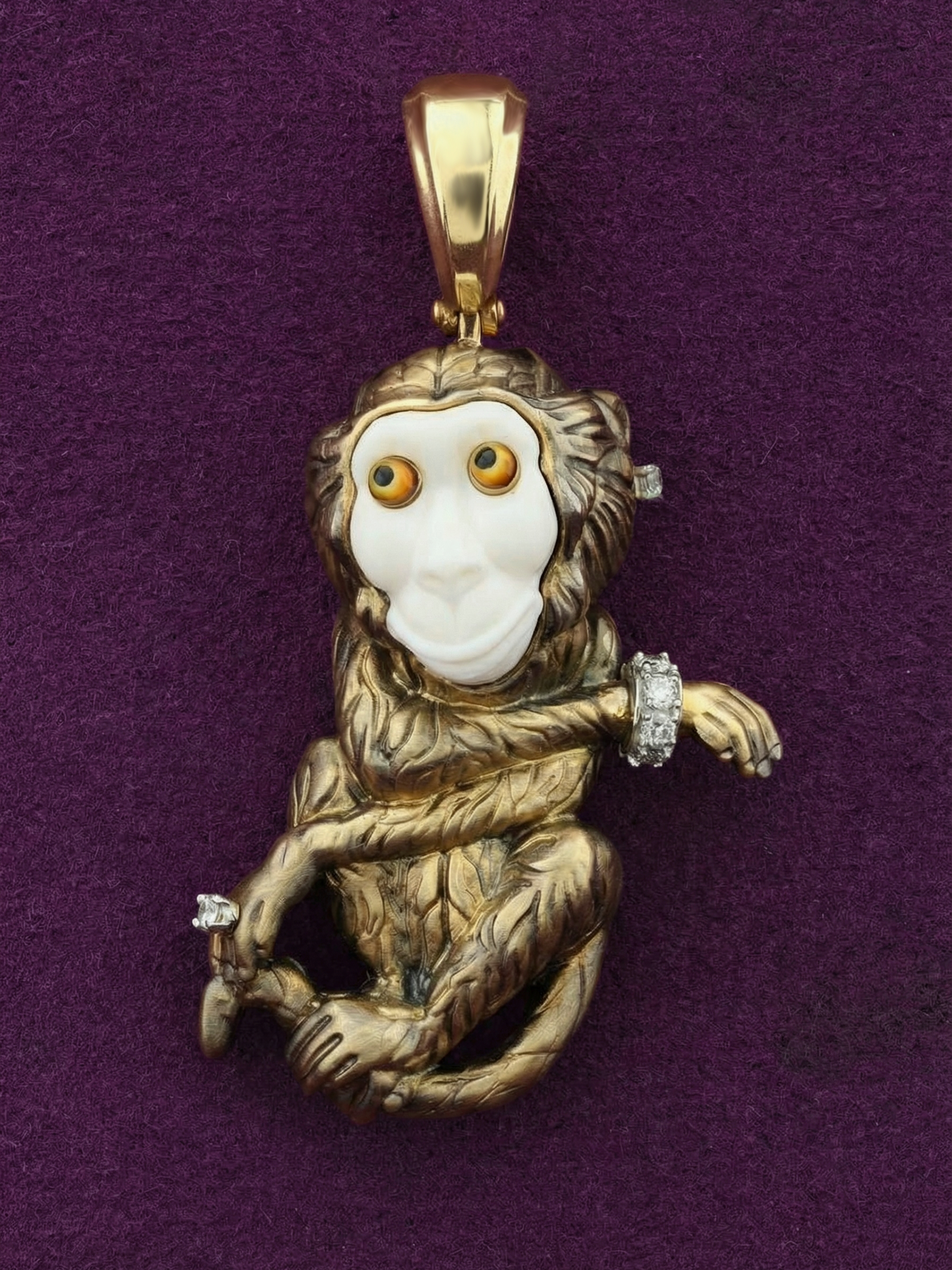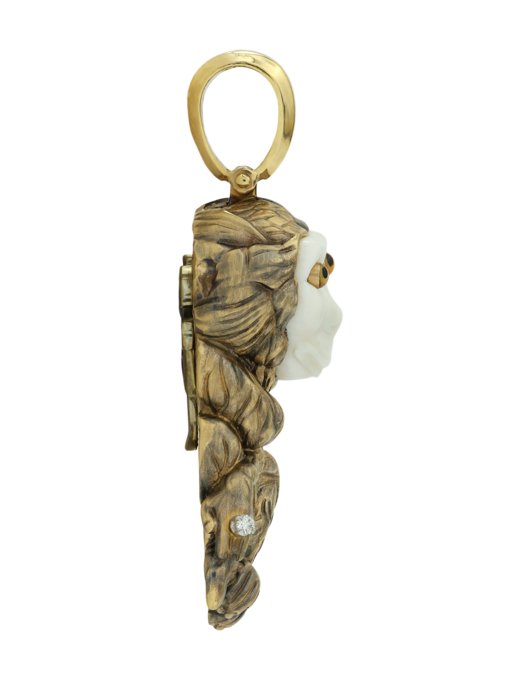 Подвеска из лимонного золота c эмаль, бриллиантами, рубином и бивнем мамонта