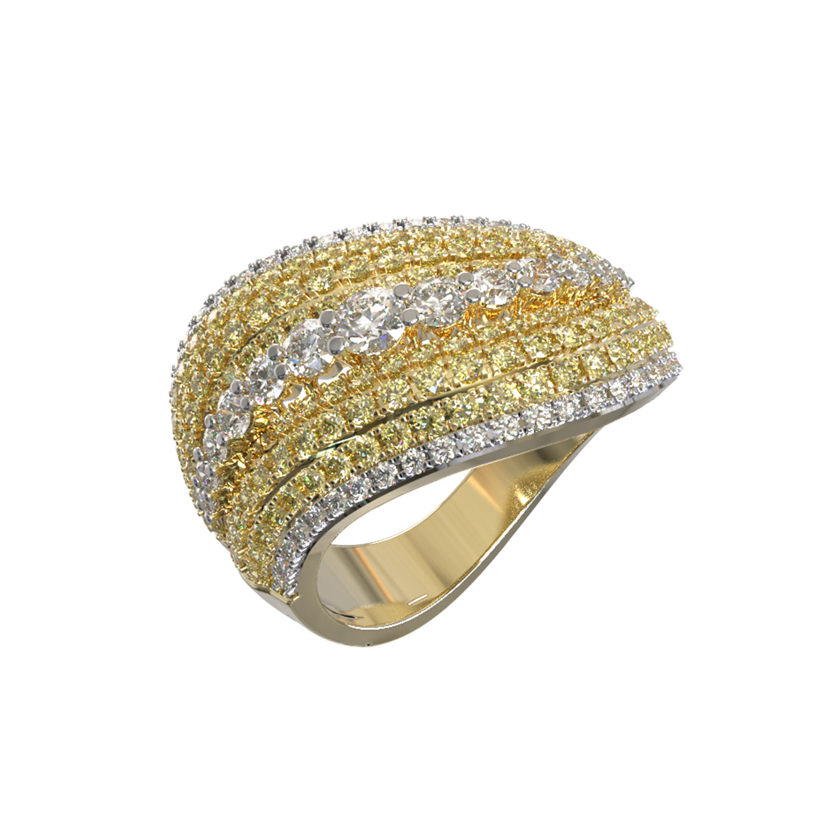 Кольцо из лимонного золота c бриллиантами и сапфиром