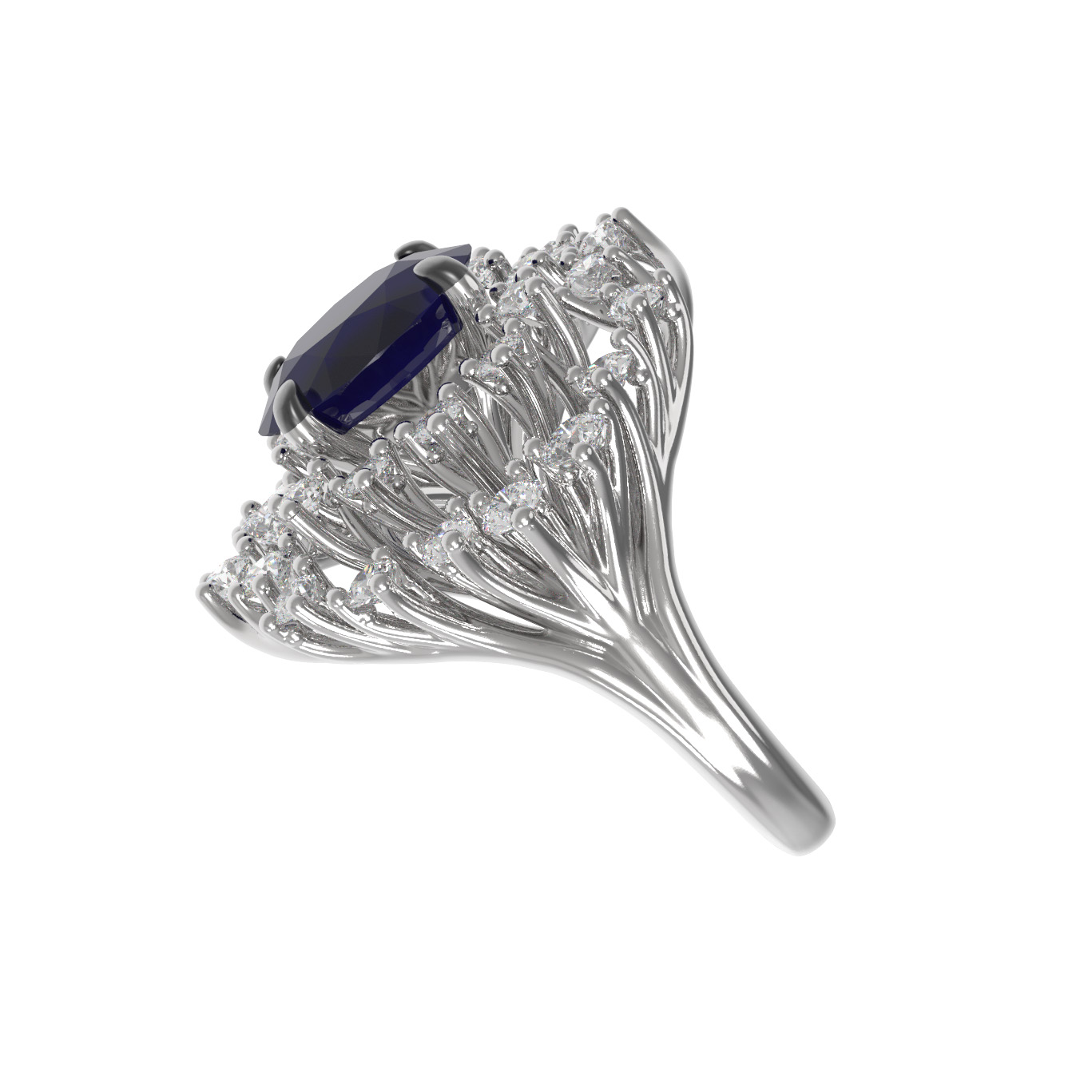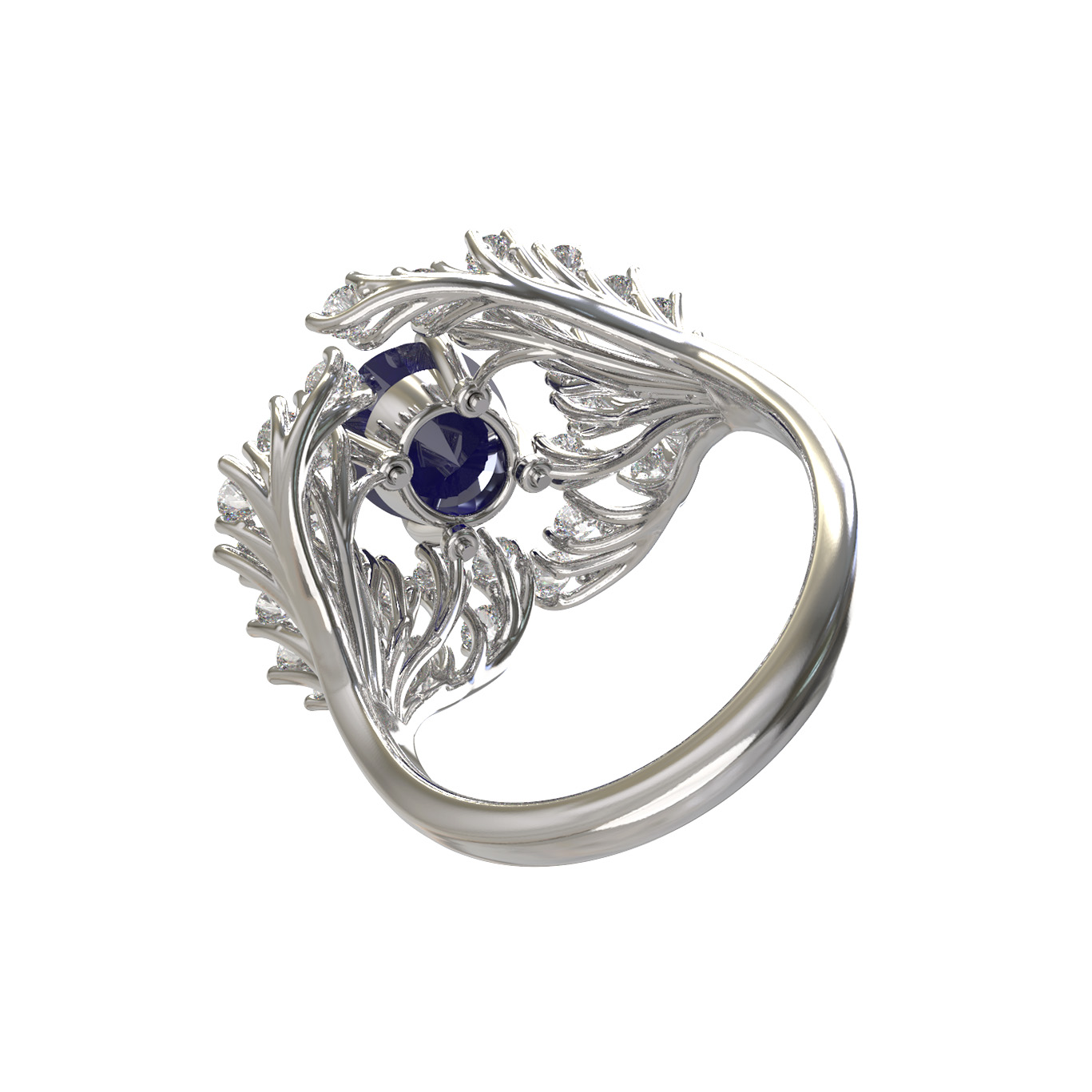 Кольцо из белого золота c бриллиантами и сапфиром