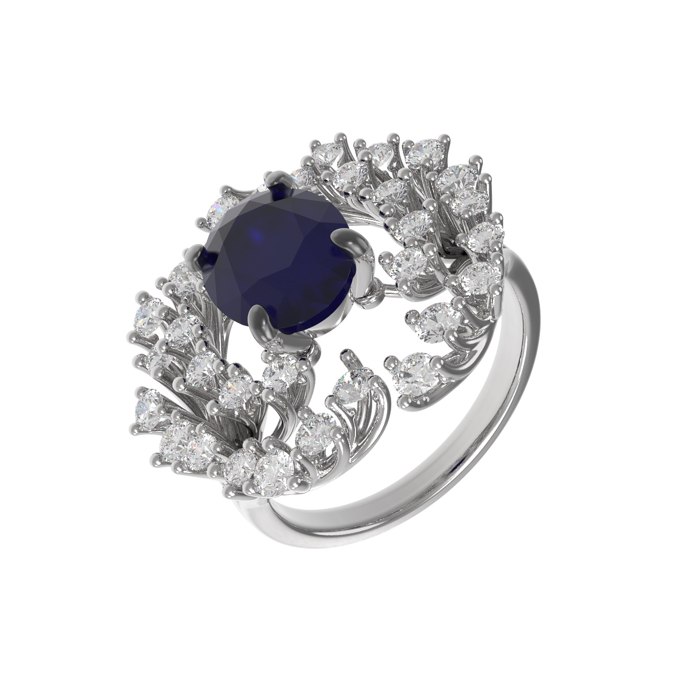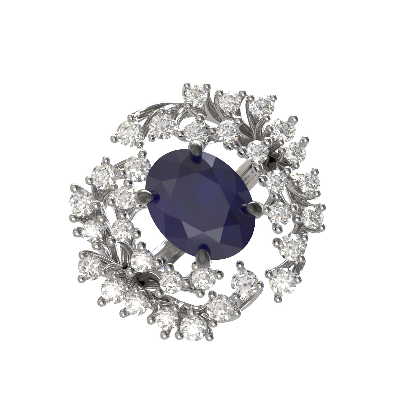 Кольцо из белого золота c бриллиантами и сапфиром