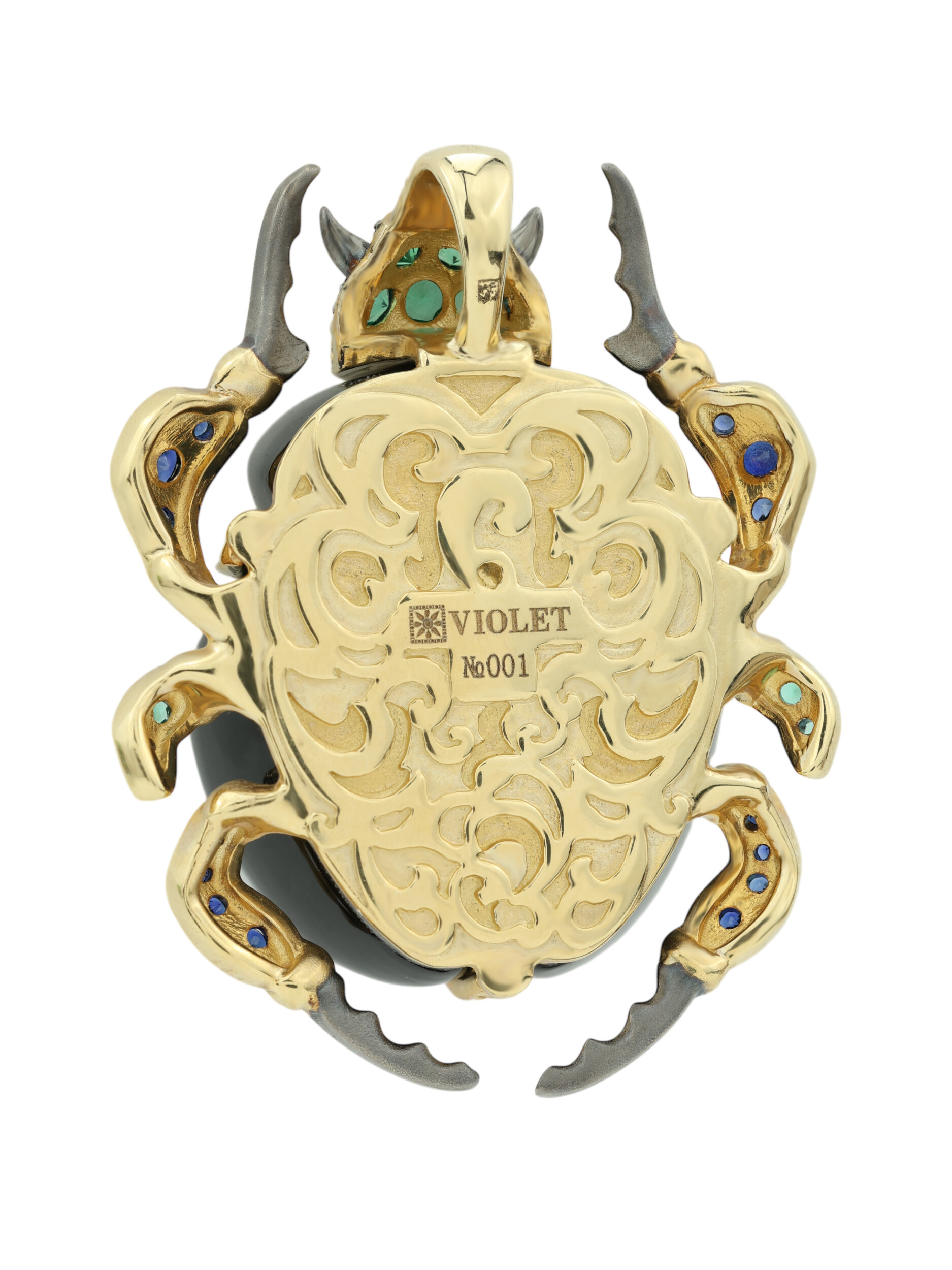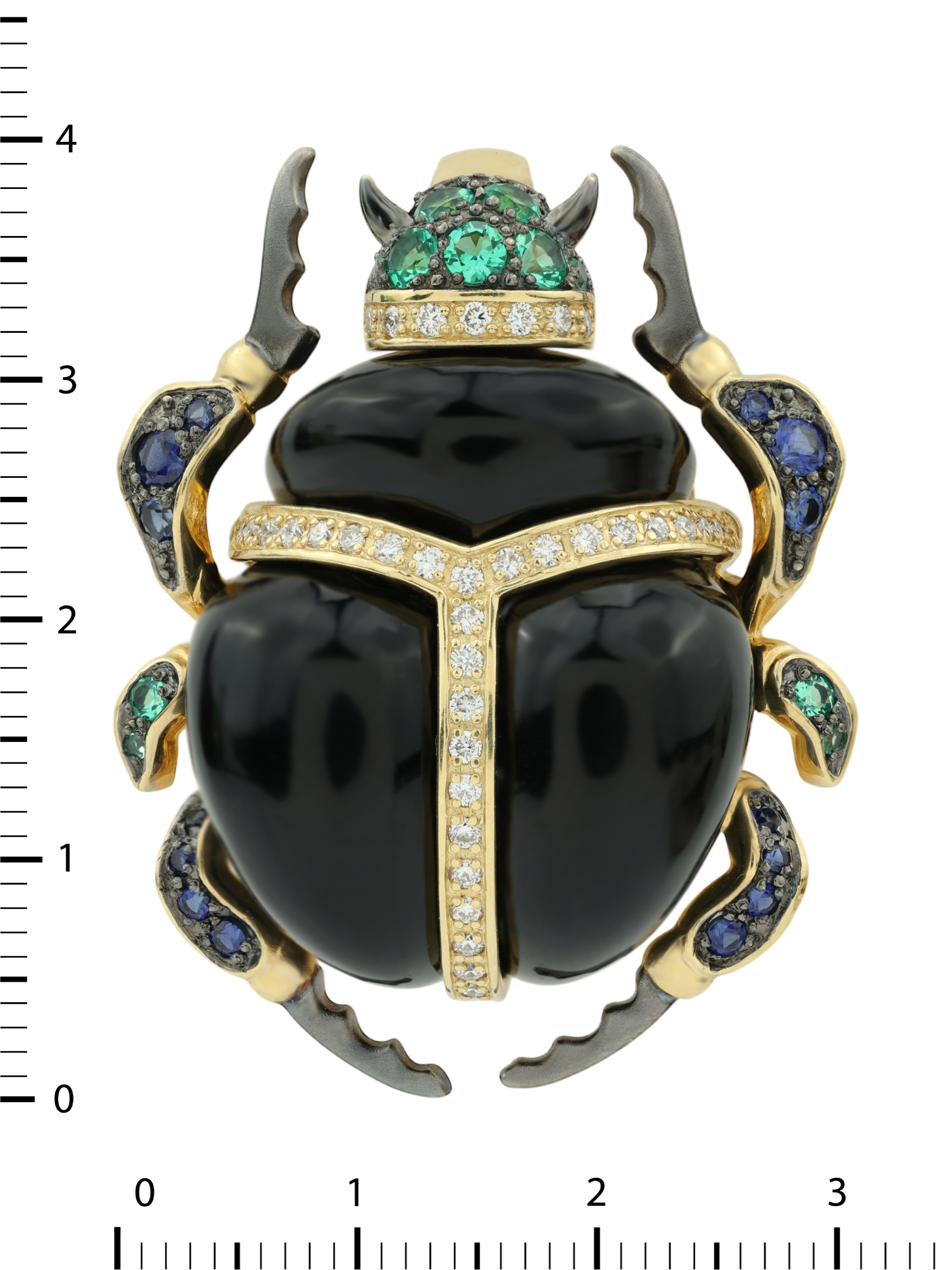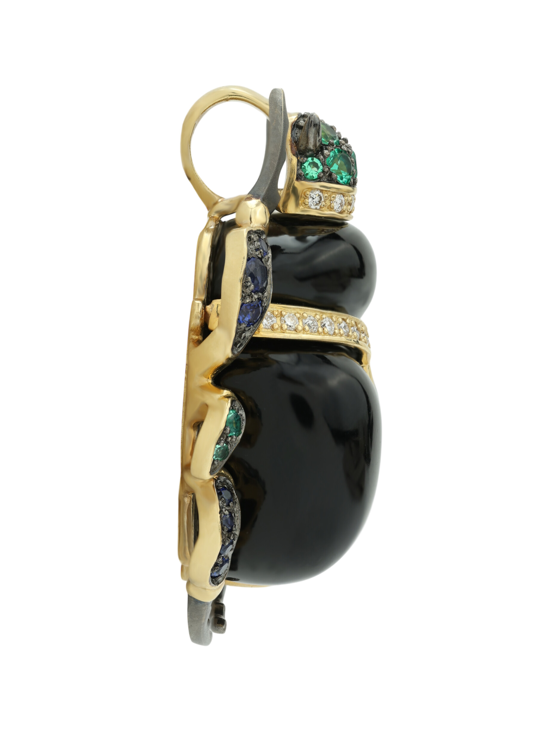 Подвеска из лимонного золота c бриллиантами, сапфиром, изумрудом, ониксом и изумрудом