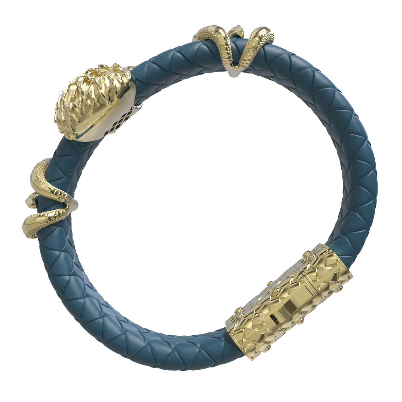 Браслет из лимонного золота c бриллиантами и кожаным шнурком