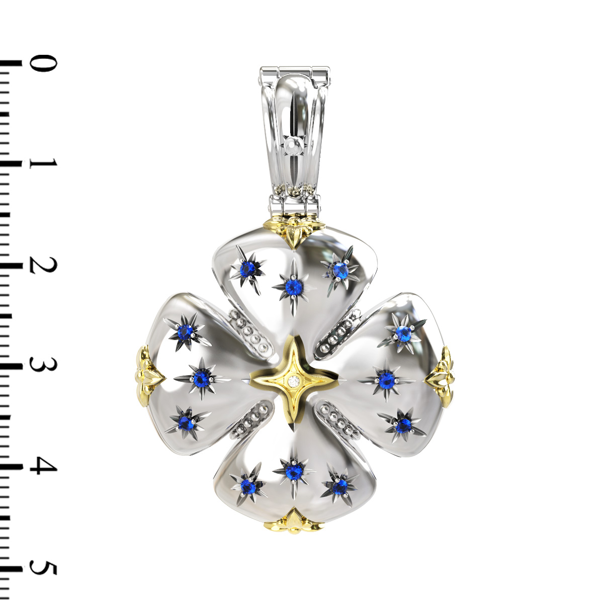 Крест из серебра и золота c фианитом, бриллиантами и рубином