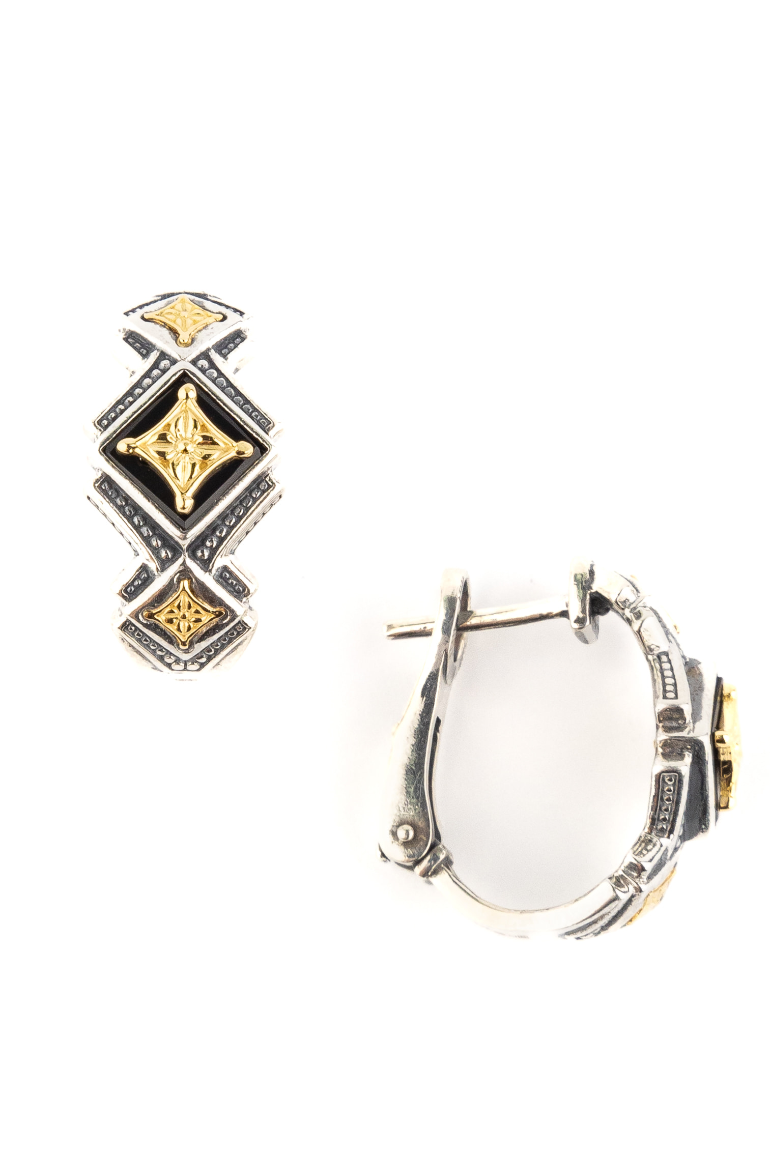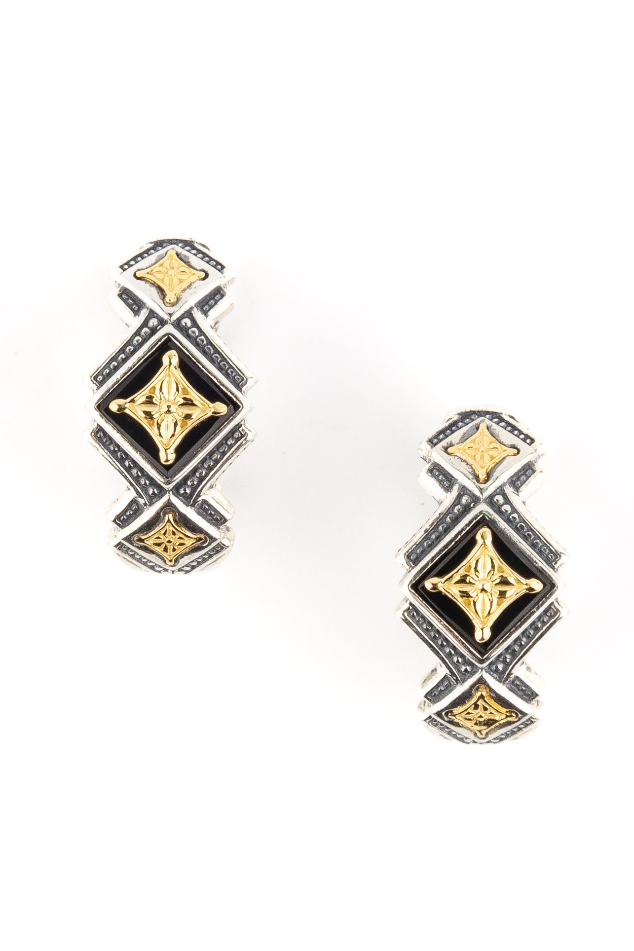 Серьги из серебра и золота c ониксом и рубином