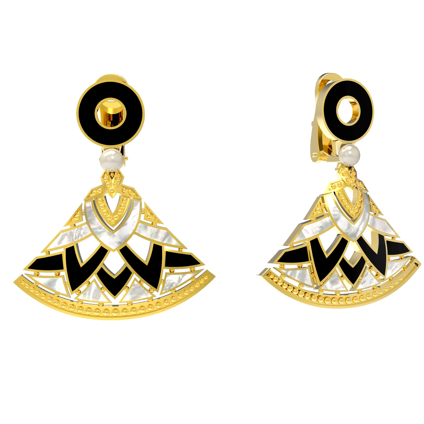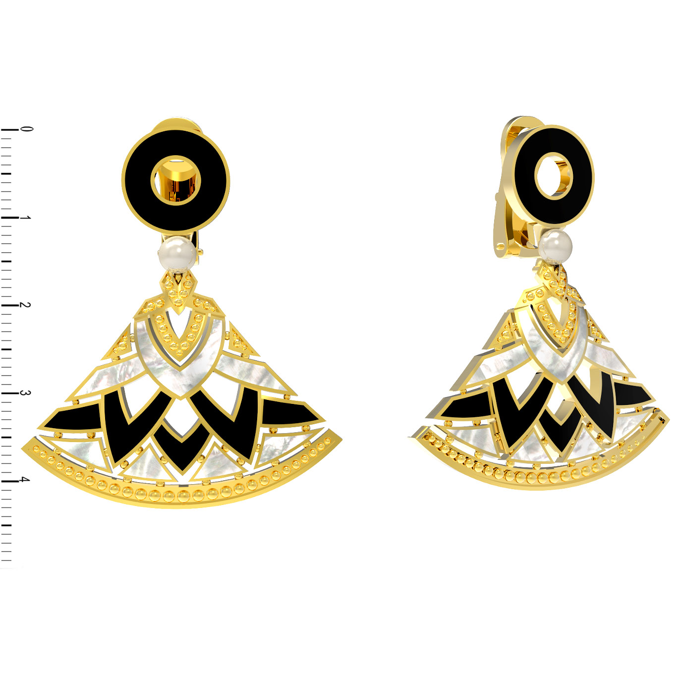 Серьги из лимонного золота c жемчугом, ониксом и перламутром