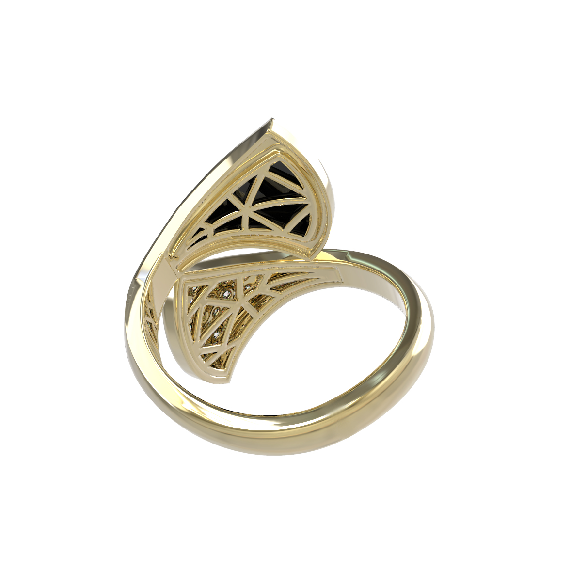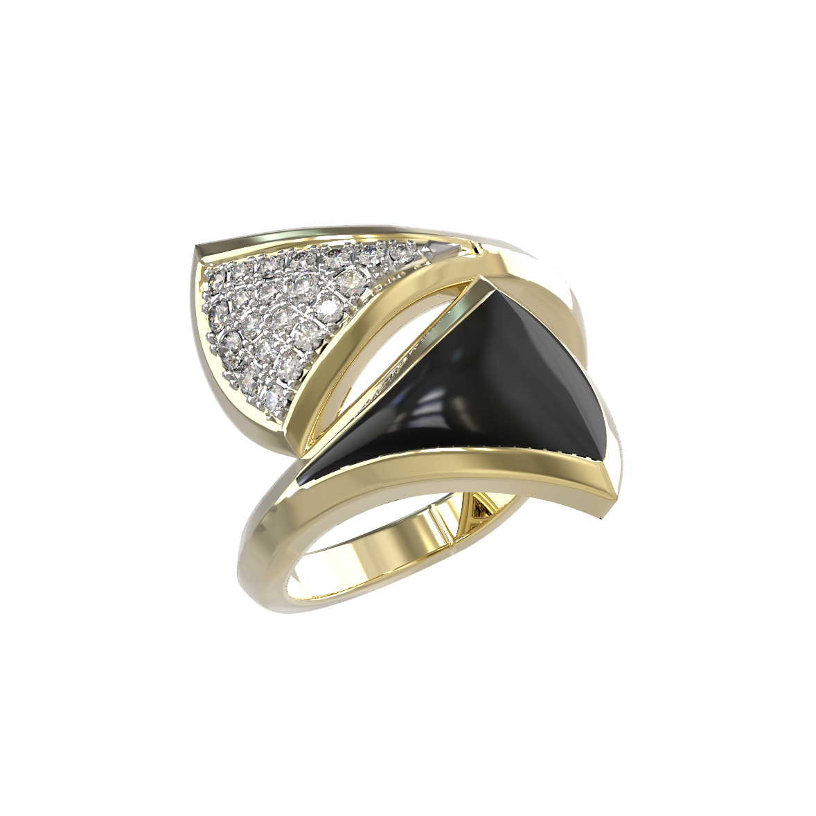 Кольцо из лимонного золота c бриллиантами и ониксом