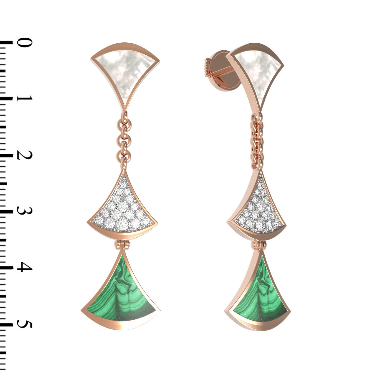 Серьги из золота c бриллиантами, малахитом и перламутром