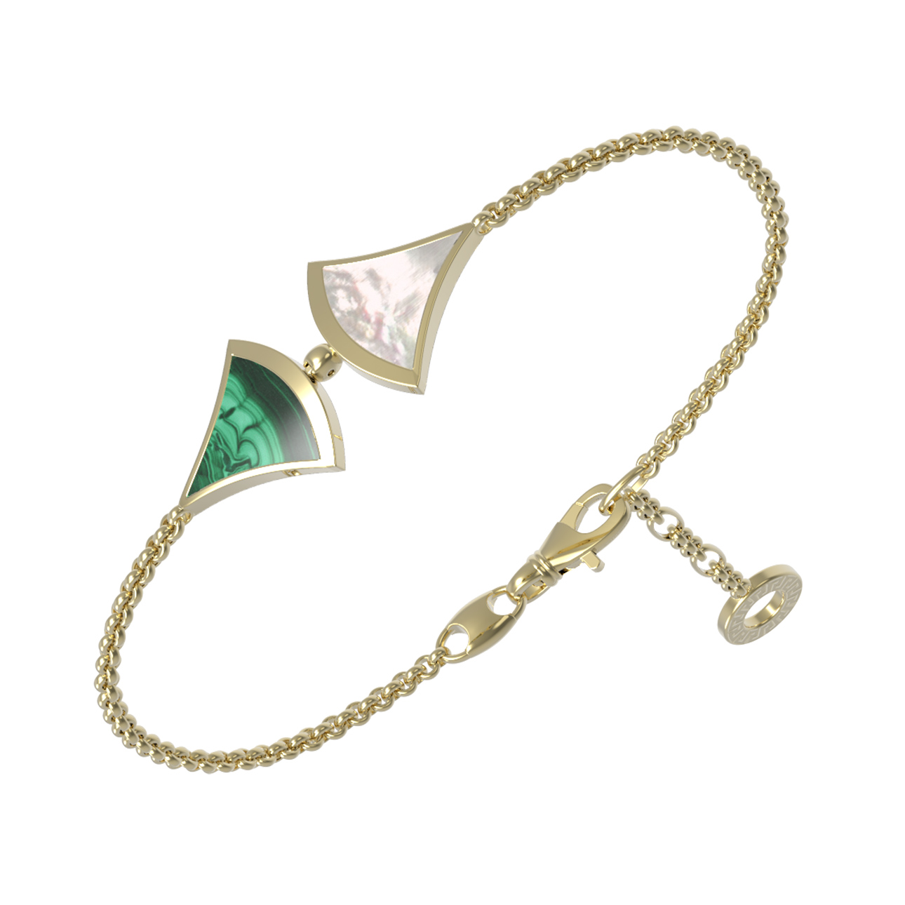 Браслет из лимонного золота c малахитом и перламутром