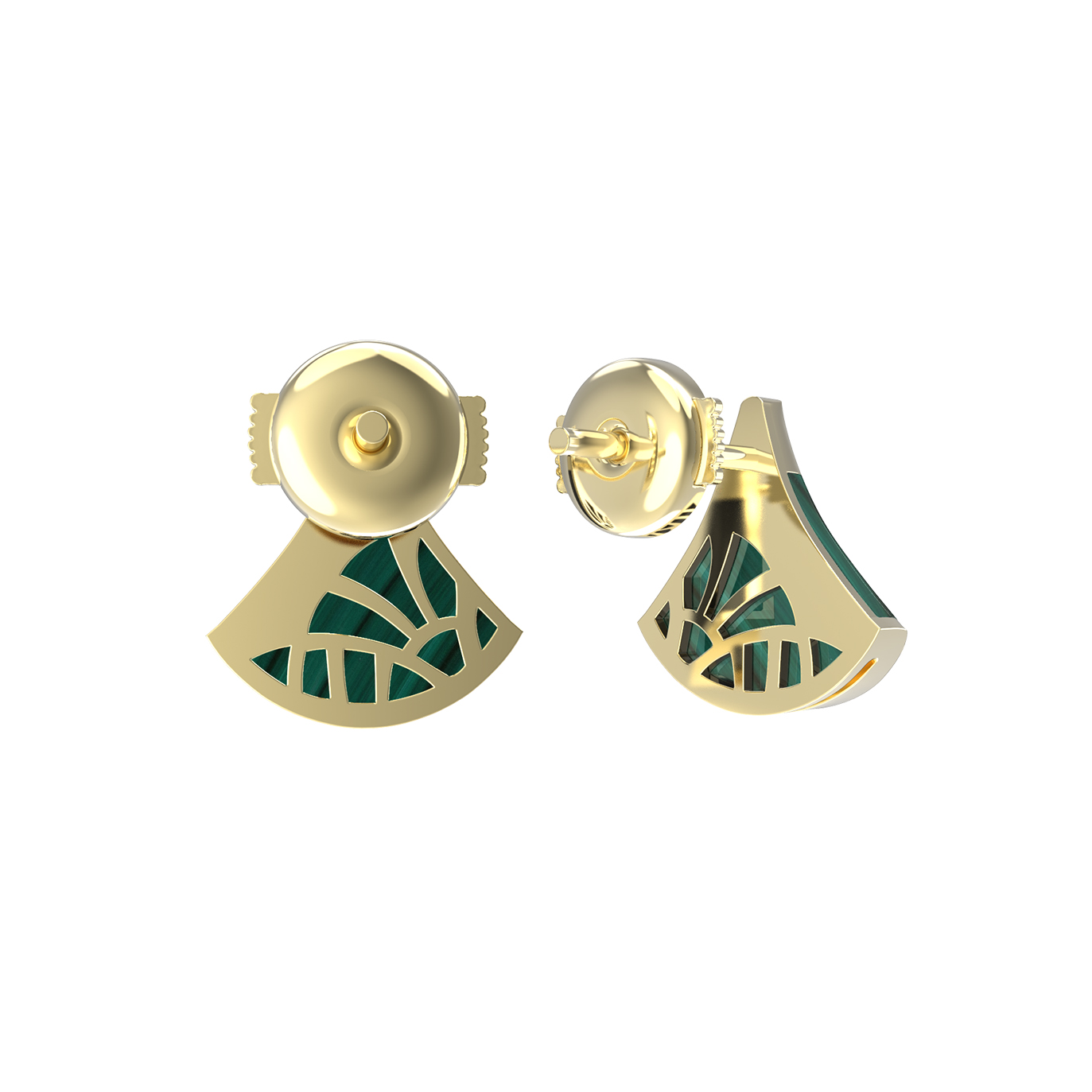 Серьги из лимонного золота c бриллиантами и малахитом