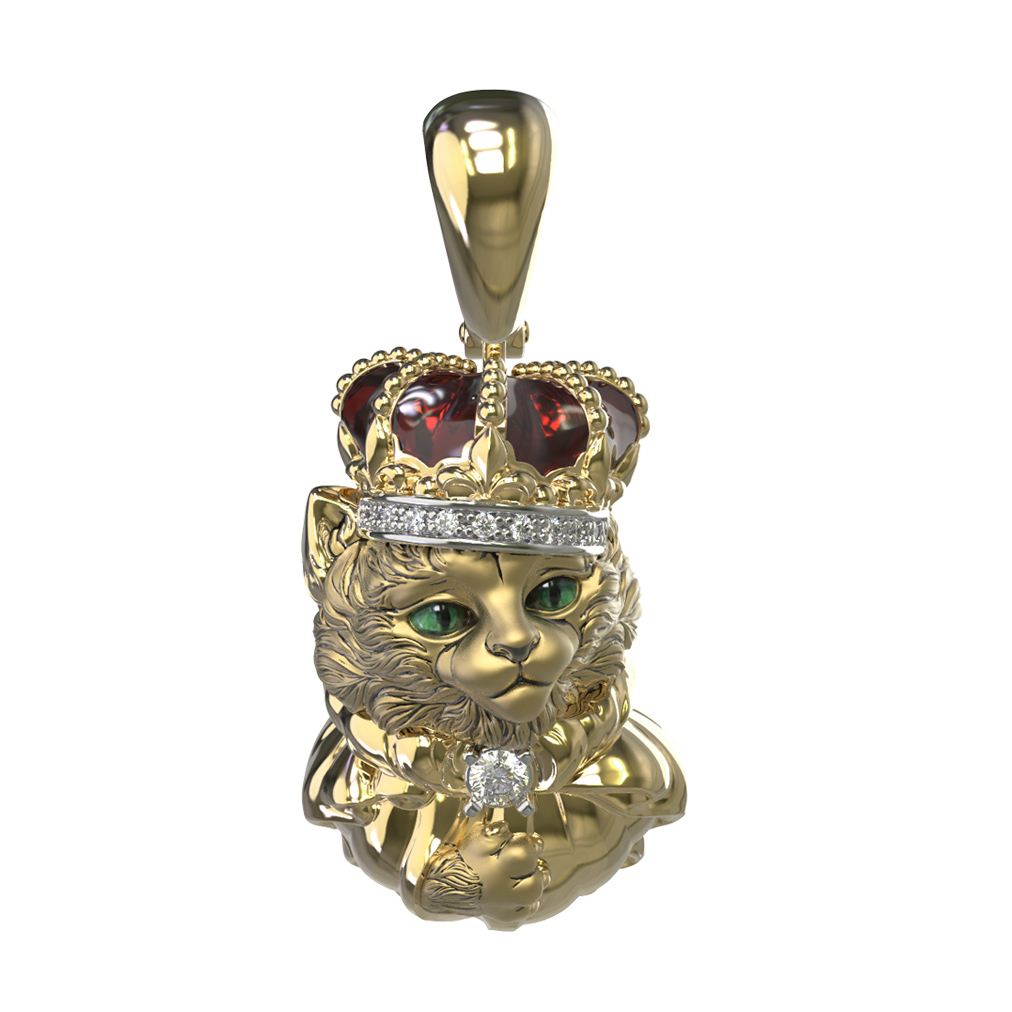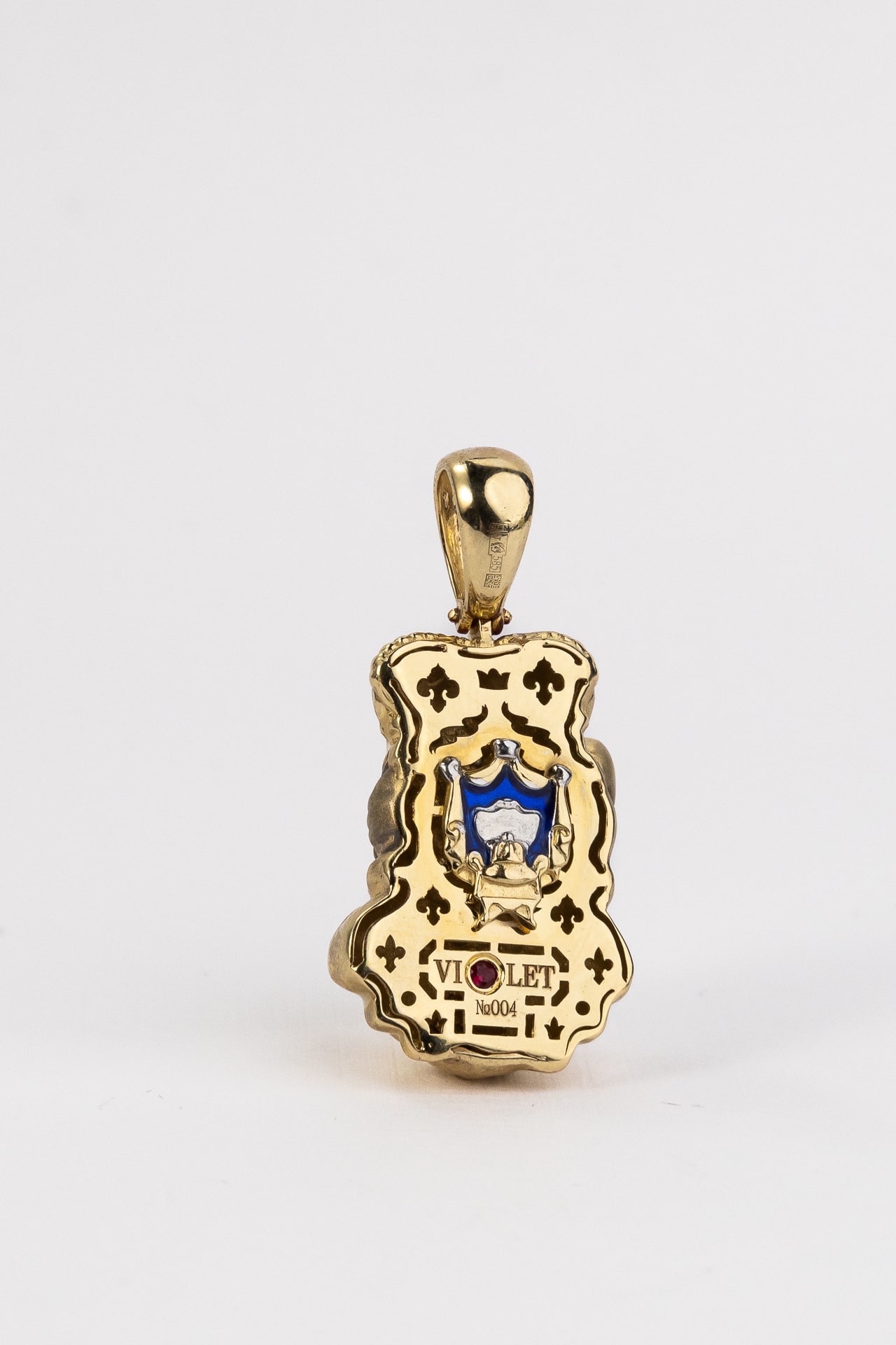 Подвеска из лимонного золота c эмаль, бриллиантами и рубином