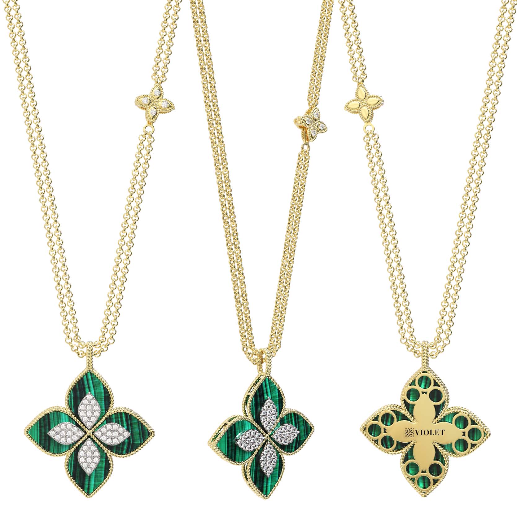 Колье из лимонного золота c бриллиантами и малахитом