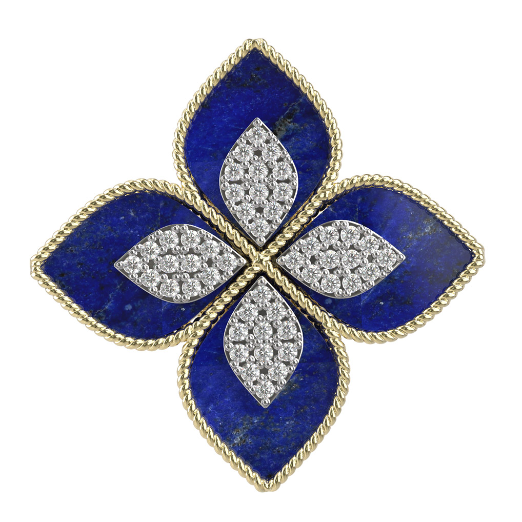 Кольцо из лимонного золота c бриллиантами и лазуритом