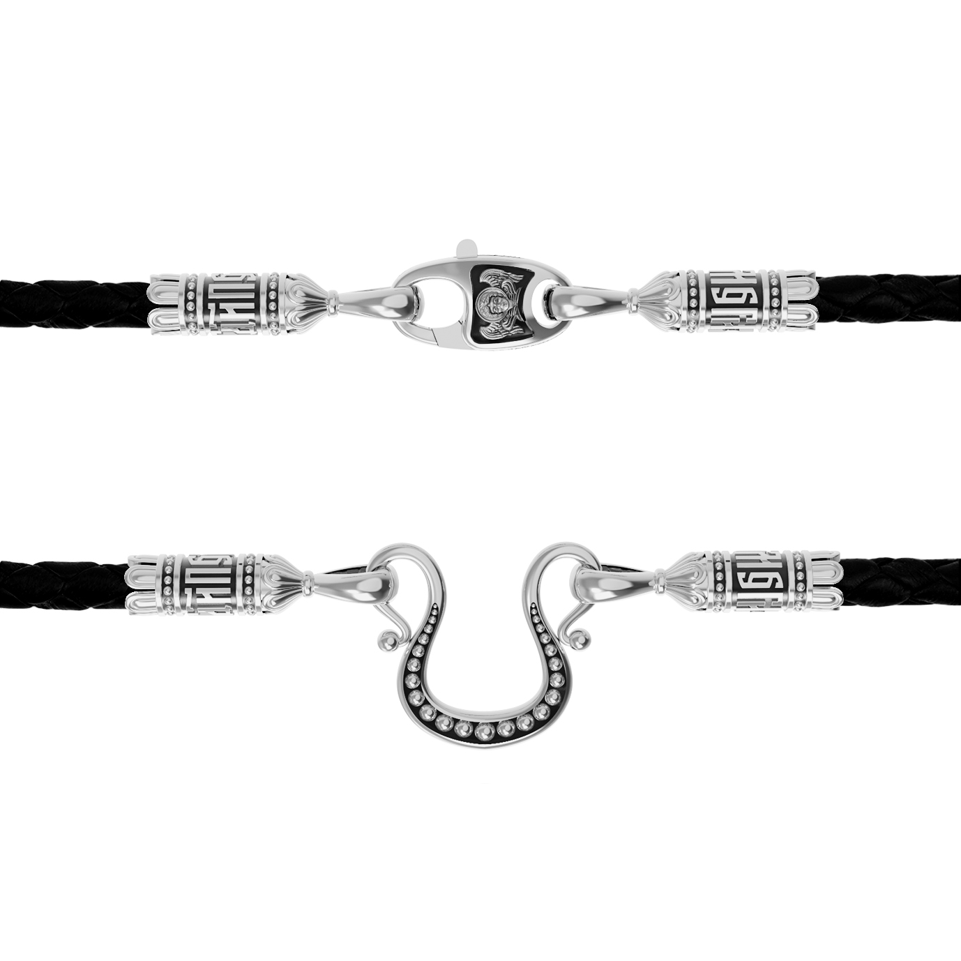 Шнурок кожаный из белого золота c кожаным шнурком