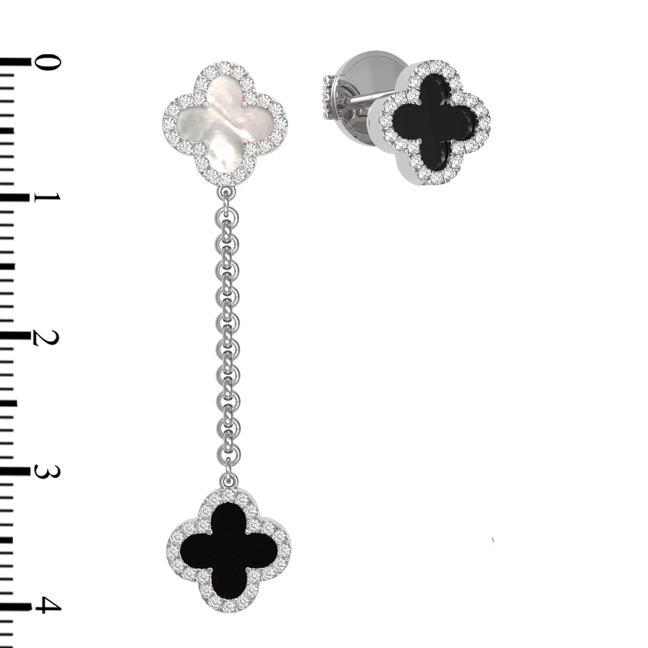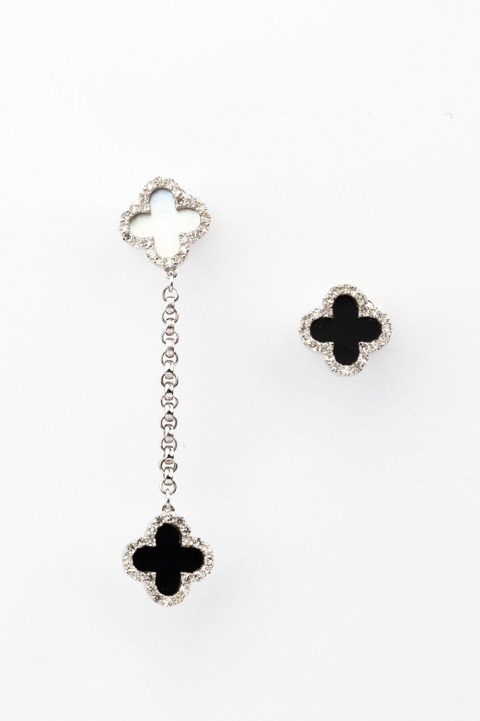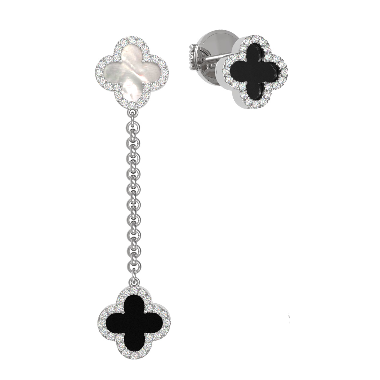 Серьги из белого золота c бриллиантами, ониксом и перламутром