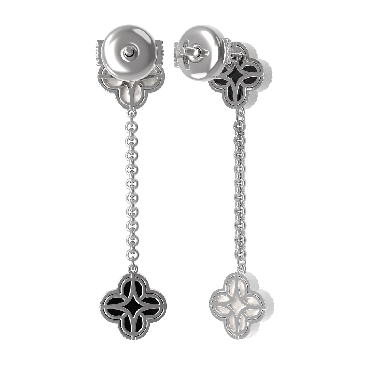 Серьги из белого золота c бриллиантами, ониксом и перламутром