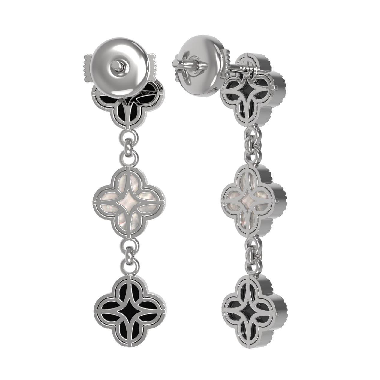 Серьги из белого золота c бриллиантами, ониксом и перламутром