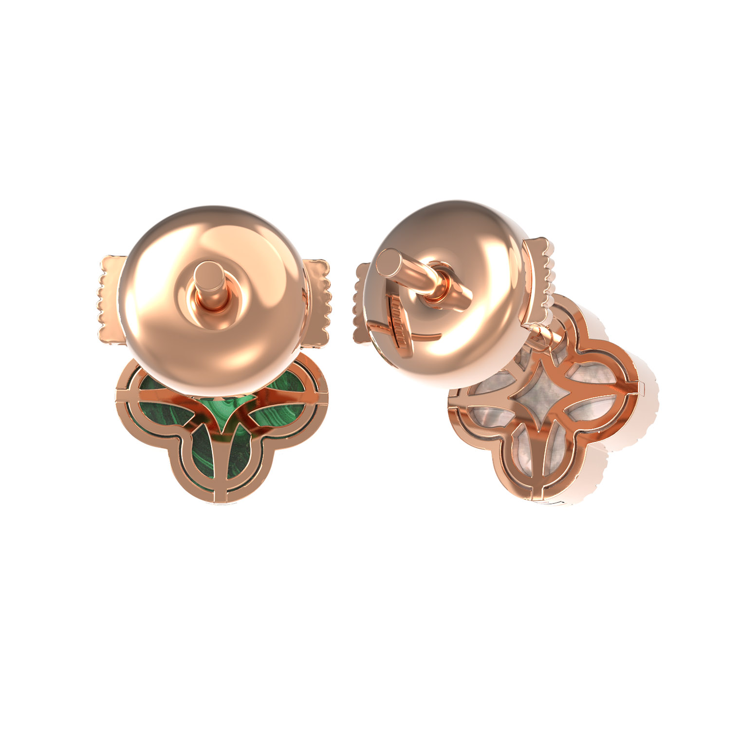 Серьги из золота c бриллиантами, малахитом и перламутром