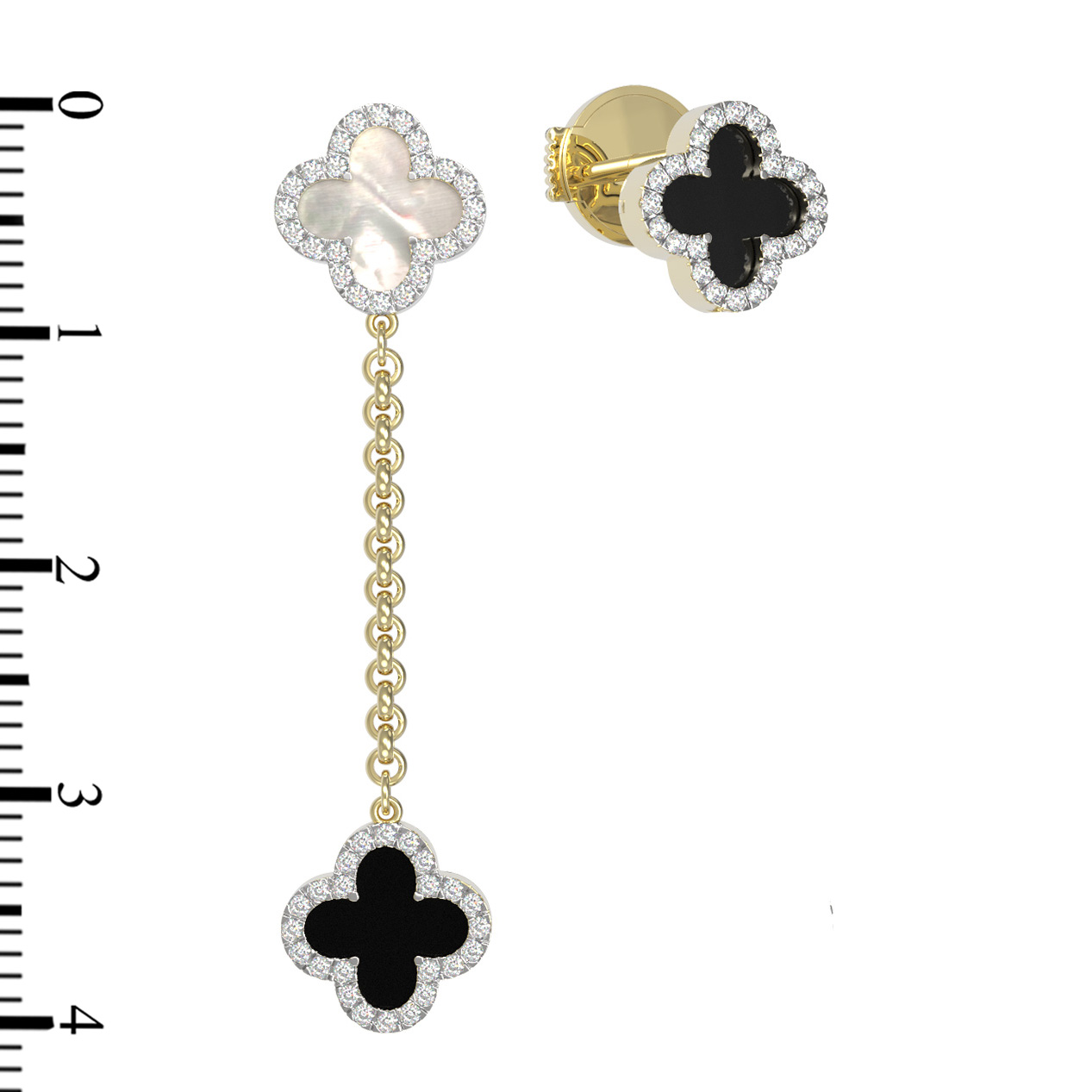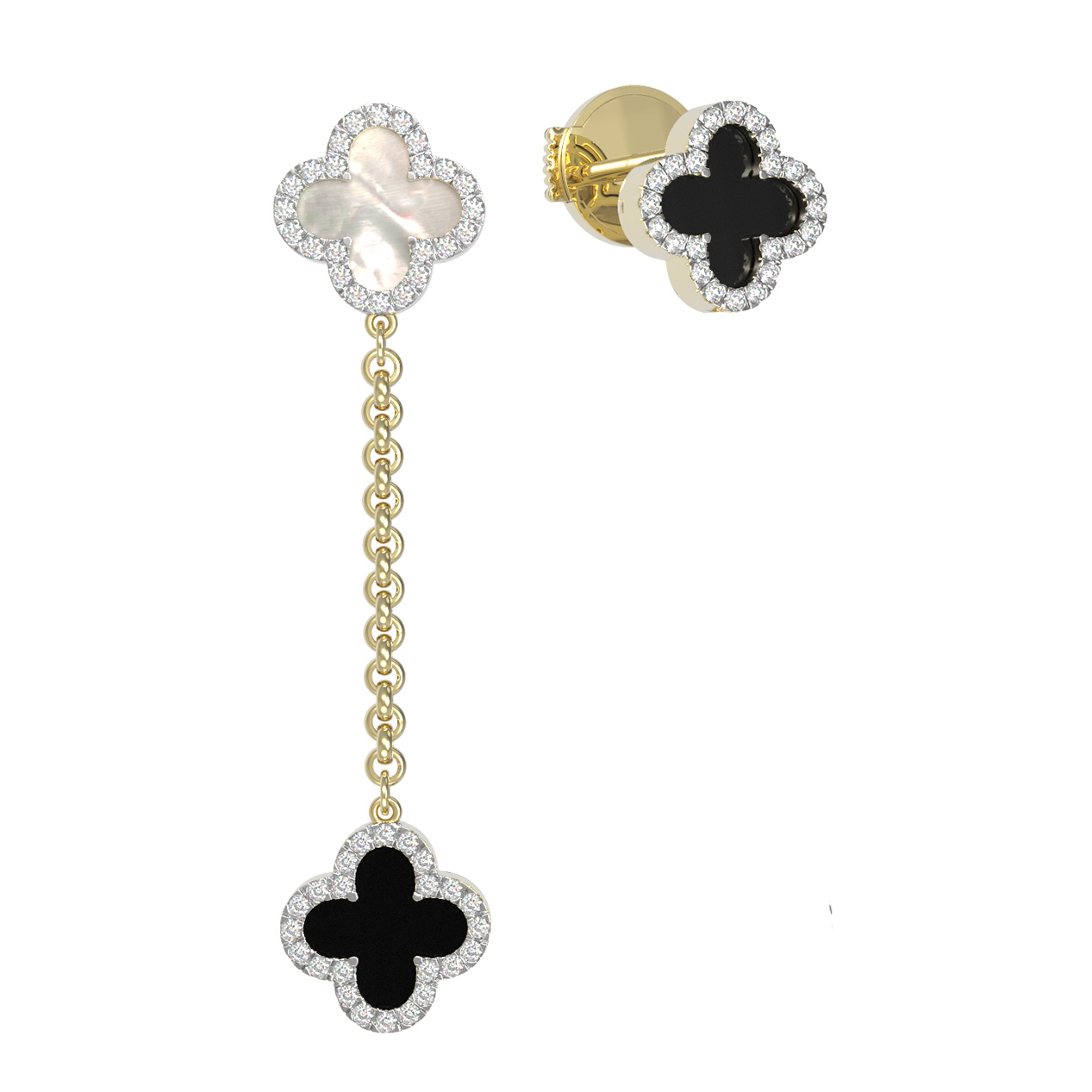 Серьги из лимонного золота c бриллиантами, ониксом и перламутром