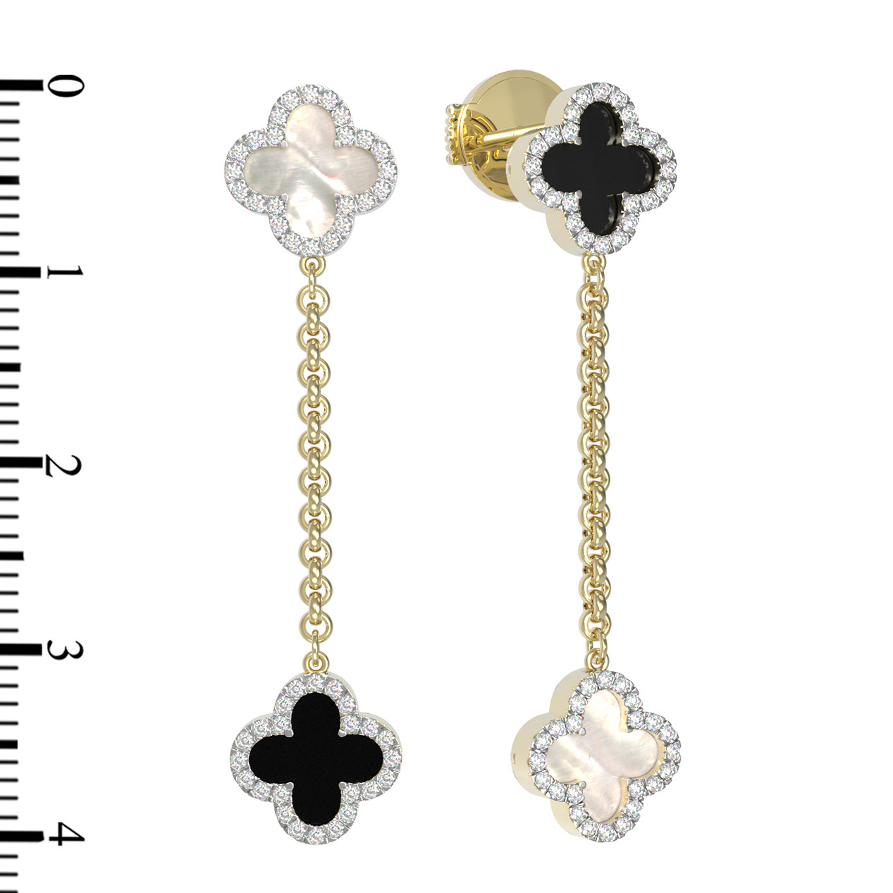 Серьги из лимонного золота c бриллиантами, ониксом и перламутром