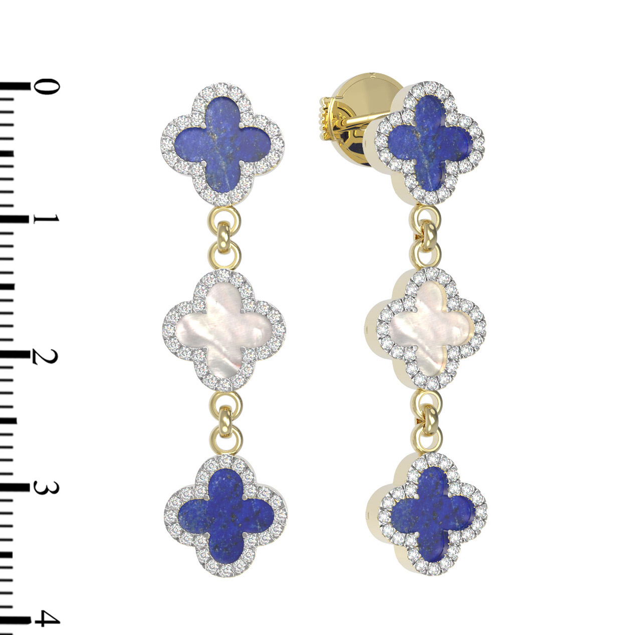 Серьги из лимонного золота c бриллиантами, лазуритом и перламутром