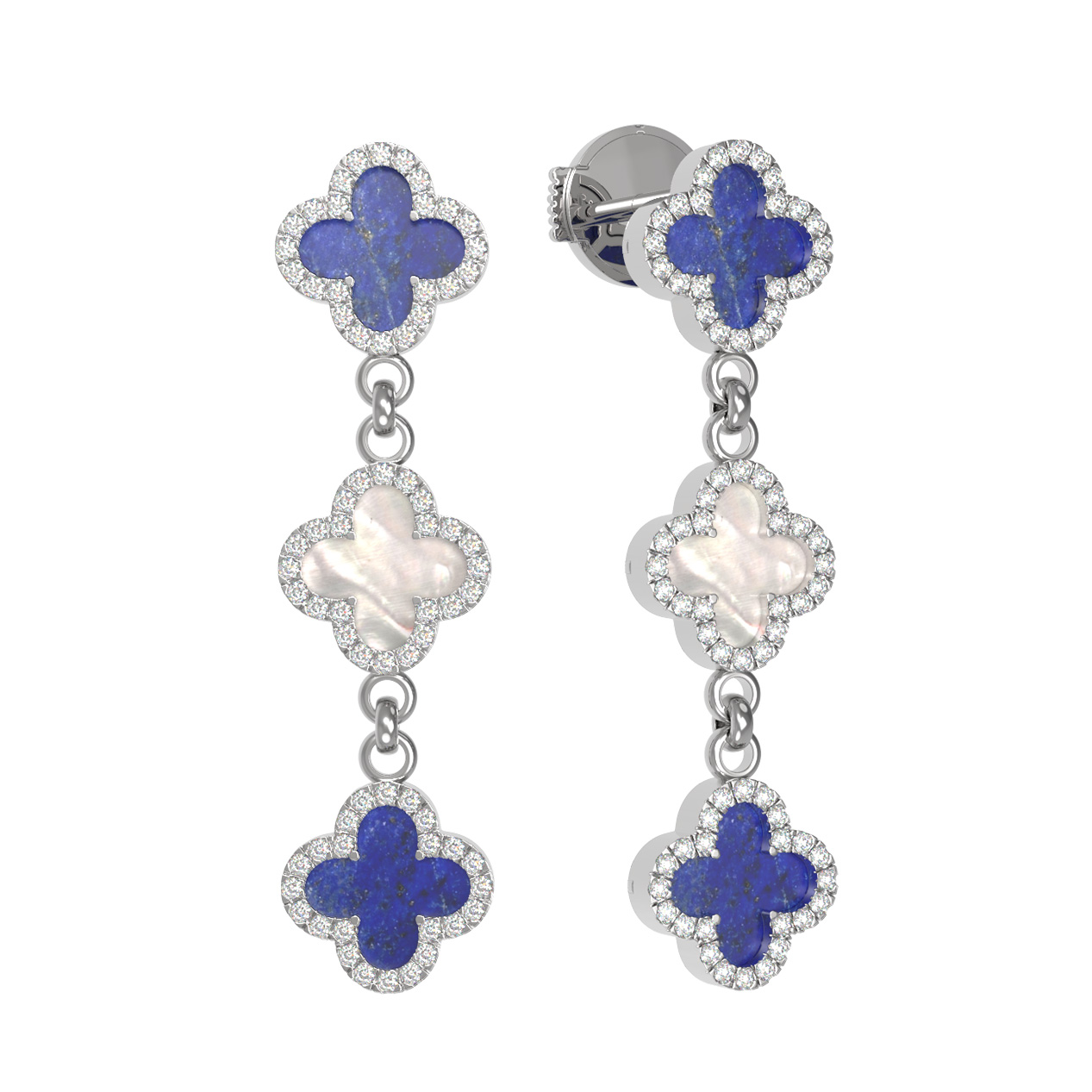 Серьги из белого золота c бриллиантами, лазуритом и перламутром