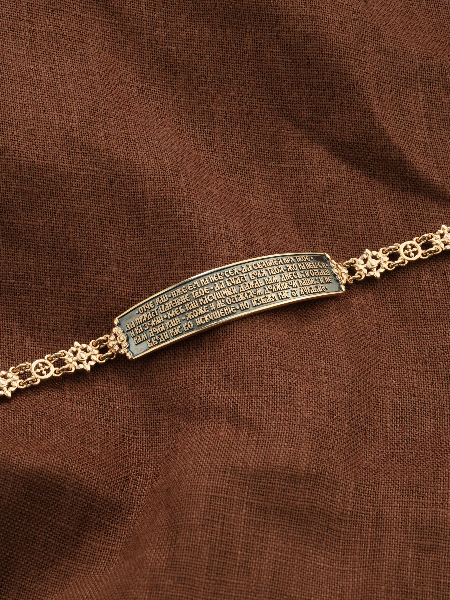 На основном звене написана молитва: «Отче наш, Иже еси на небесех! Да святится имя Твое, да приидет Царствие Твое, да будет воля Твоя, яко на небеси и на земли. Хлеб наш насущный даждь нам днесь; и остави нам долги наша, якоже и мы оставляем должником нашим; и не введи нас во искушение, но избави нас от лукаваго».