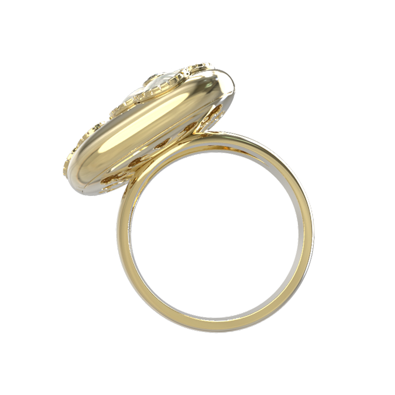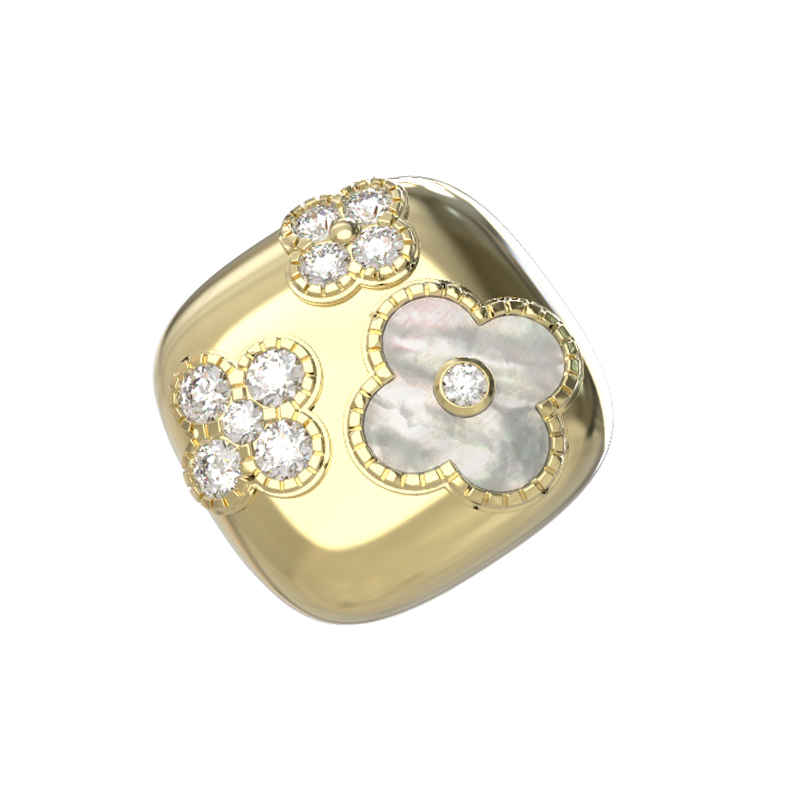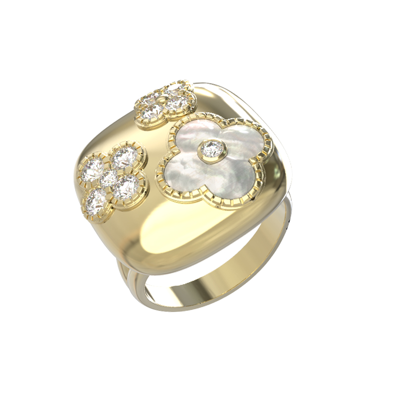 Кольцо из лимонного золота c бриллиантами и перламутром