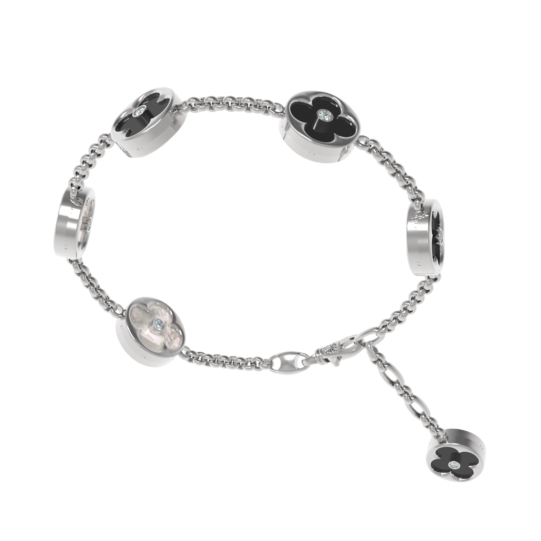 Браслет из белого золота c бриллиантами, ониксом и перламутром