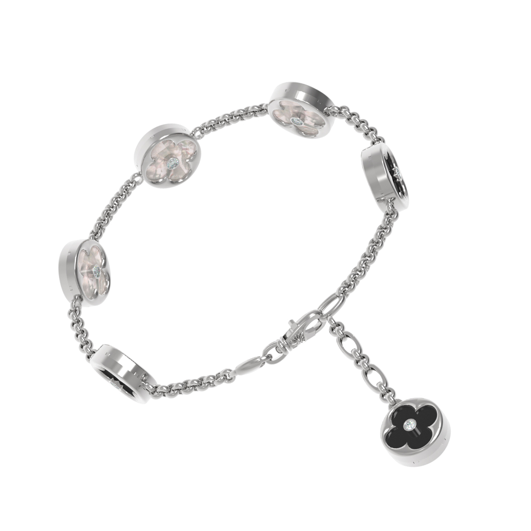 Браслет из белого золота c бриллиантами, ониксом и перламутром