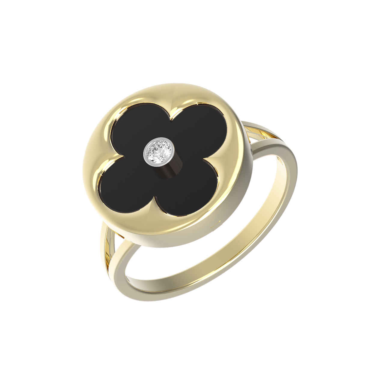 Кольцо из лимонного золота c бриллиантами и ониксом