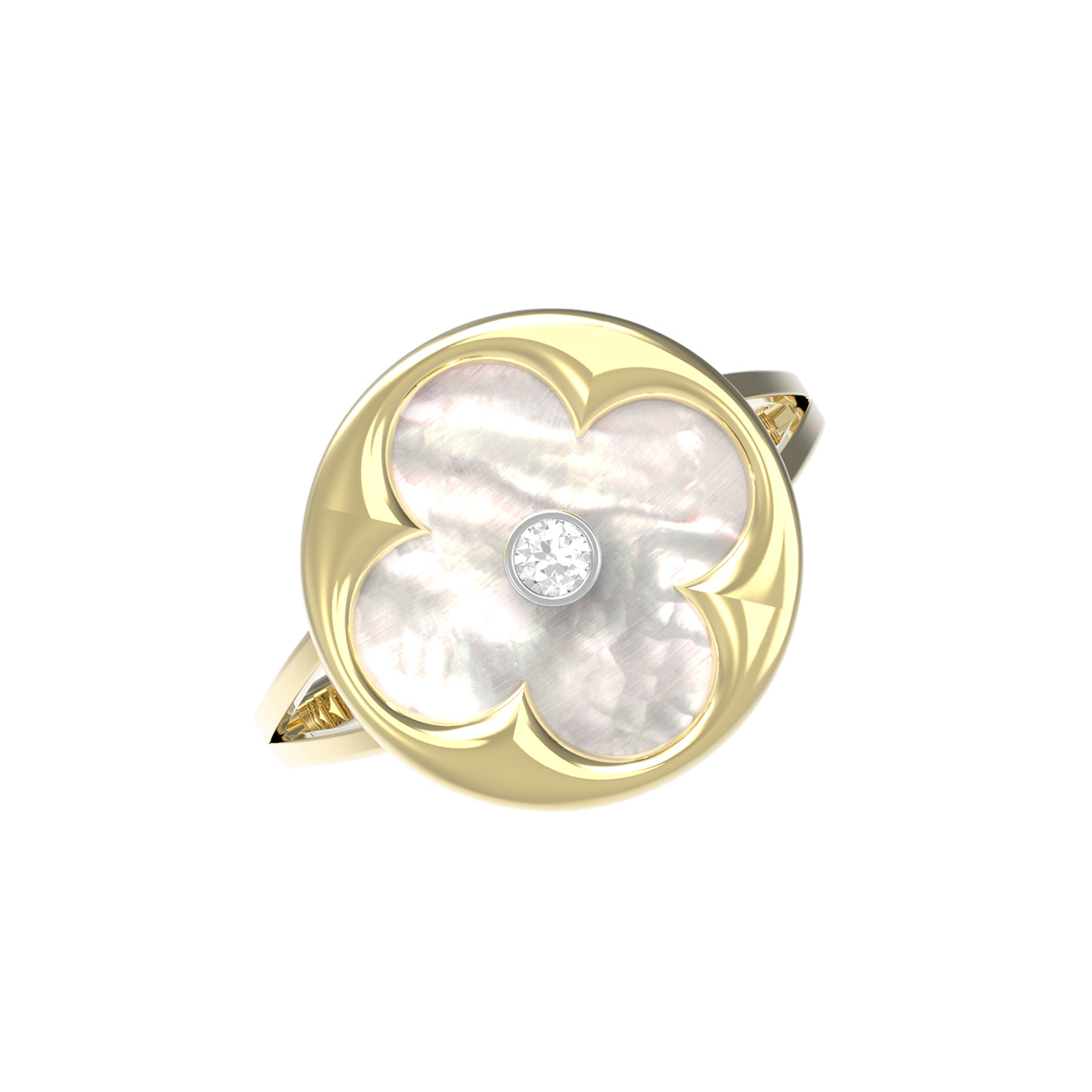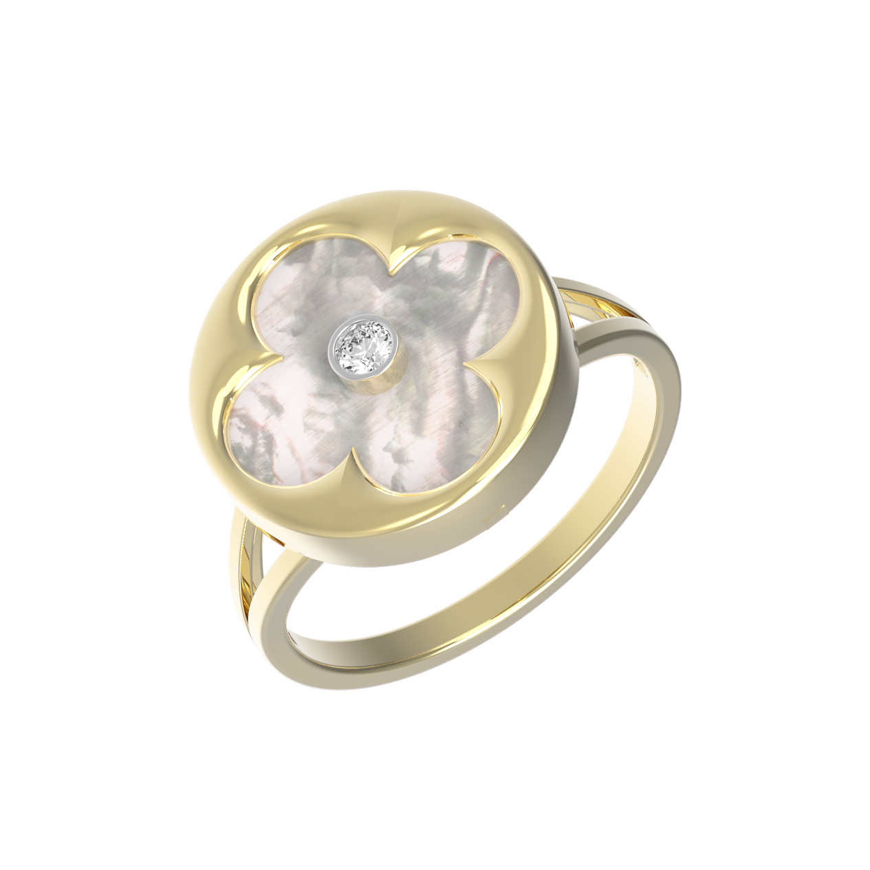 Кольцо из лимонного золота c бриллиантами и перламутром