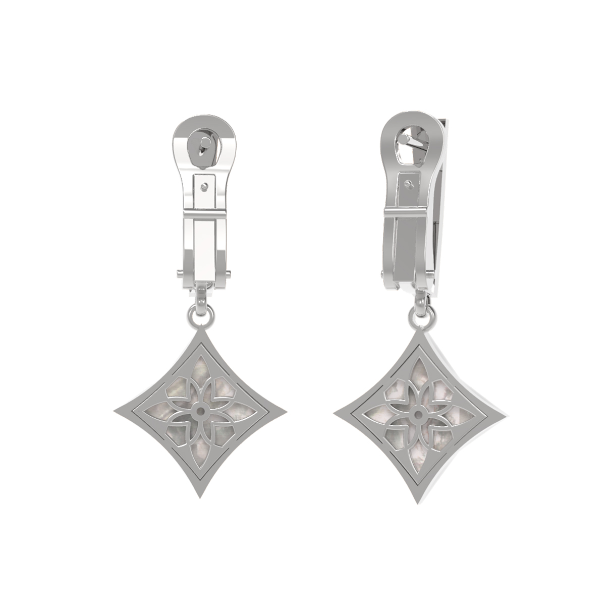 Серьги из белого золота c бриллиантами и перламутром