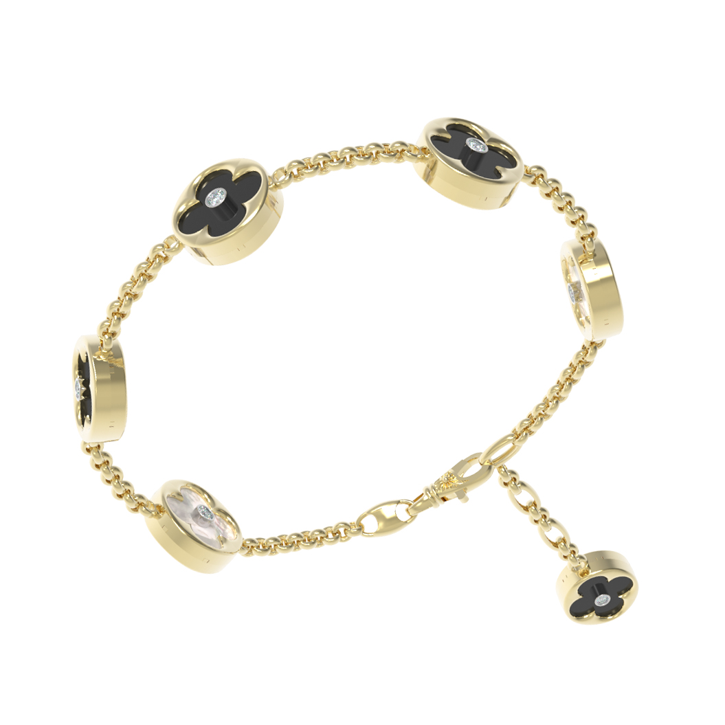 Браслет из лимонного золота c бриллиантами, ониксом и перламутром